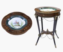 • Lot n° 172 VELADOR EN MADERA DE NOGAL, ESTILO LUIS XVI (S. XIX) Madera Velador realizado en madera de nogal al estilo de Luis XIV. Con decoración de palmetas y grecas, destaca en el sobre un recipiente de porcelana esmaltada con decoración de garzas en un paisaje. Posee un cajón en cintura. Aplicaciones de bronce en forma de cabeza de perros y cadenas colgantes. Chambrana inferior con remate. 80 cm.x47x54 cm.