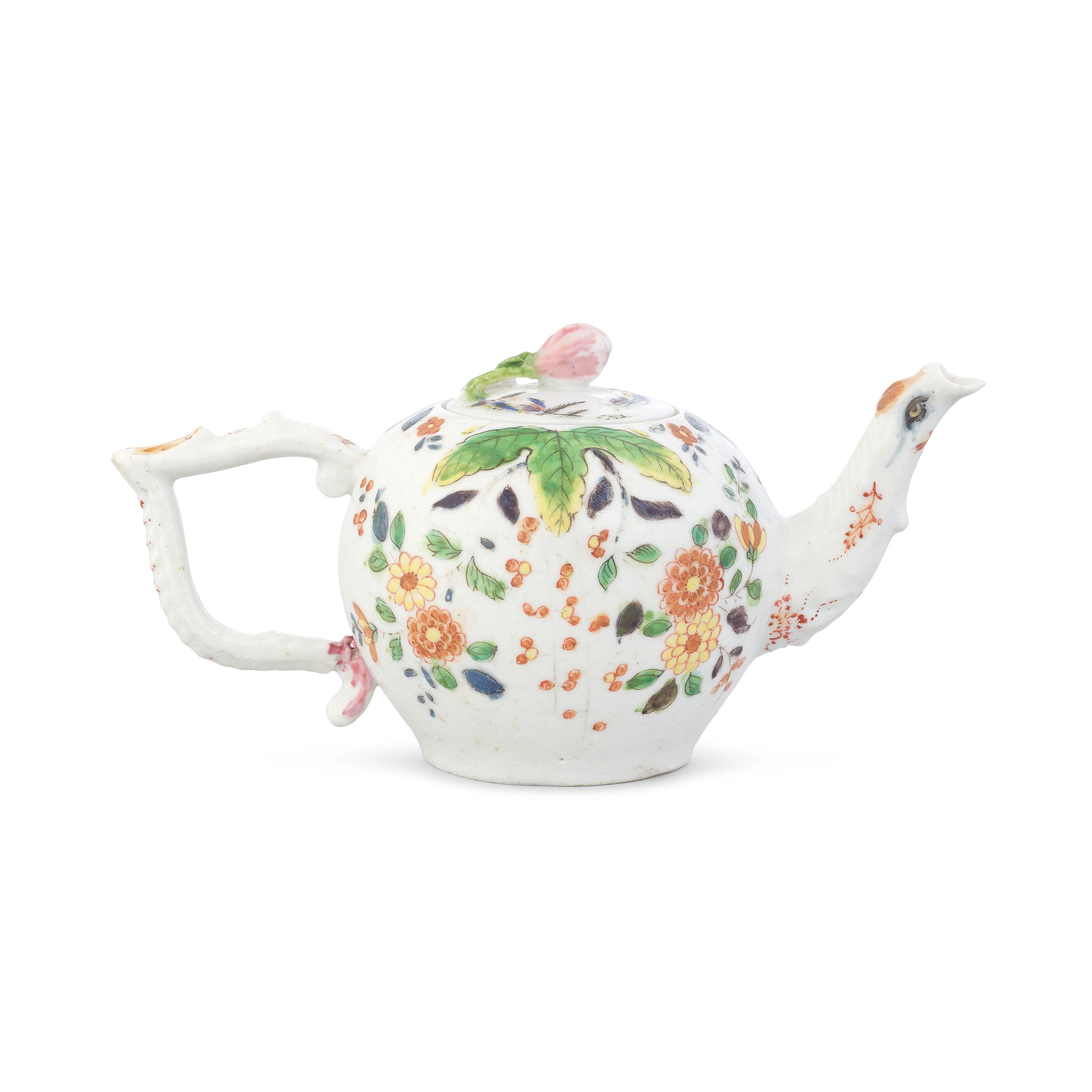 An early Longton Hall teapot and cover, circa 1753-54 Dim 17,5 x 8,5 x9 cm
