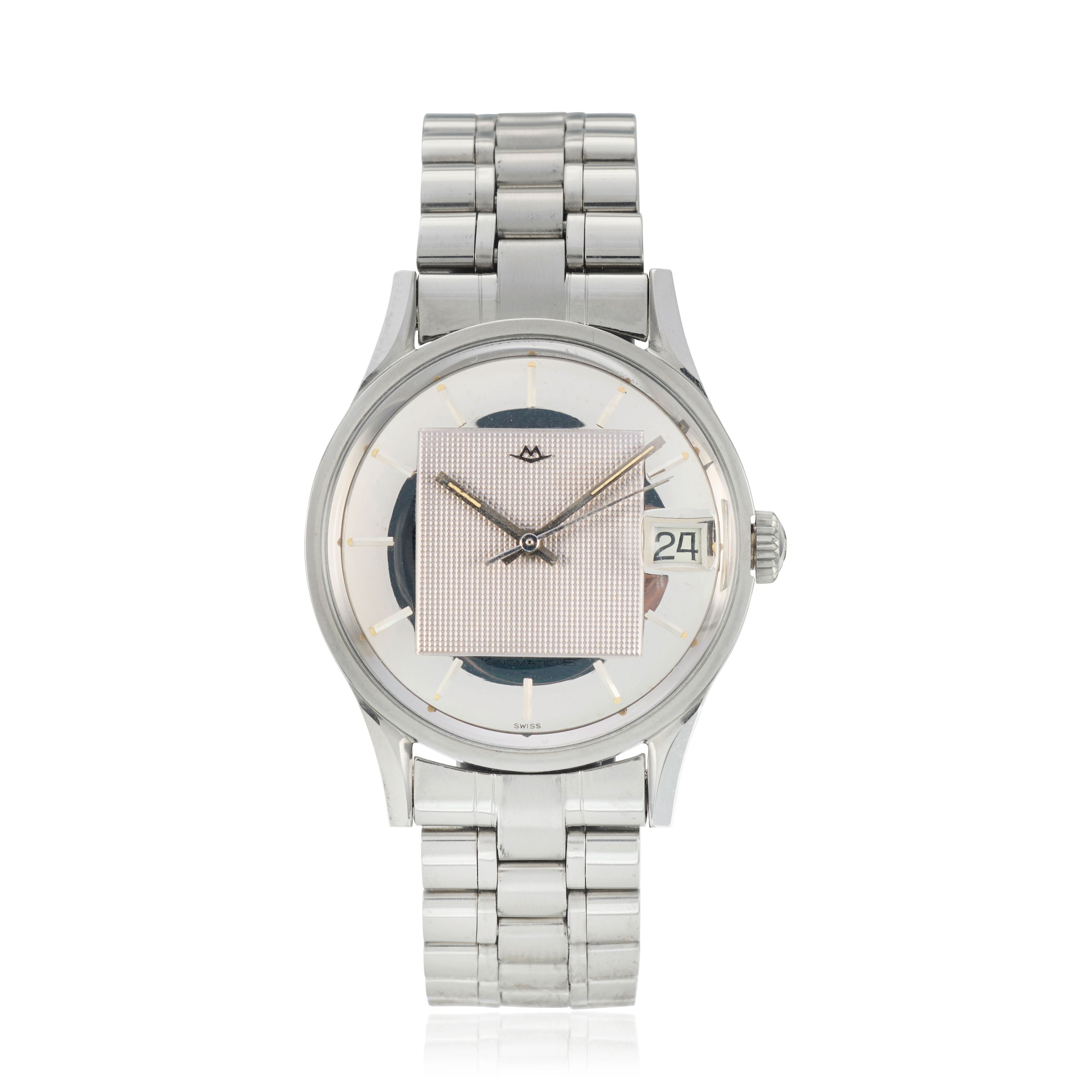 Movado. A stainless steel automatic calendar bracelet watch Kingmatic, Circa 1960