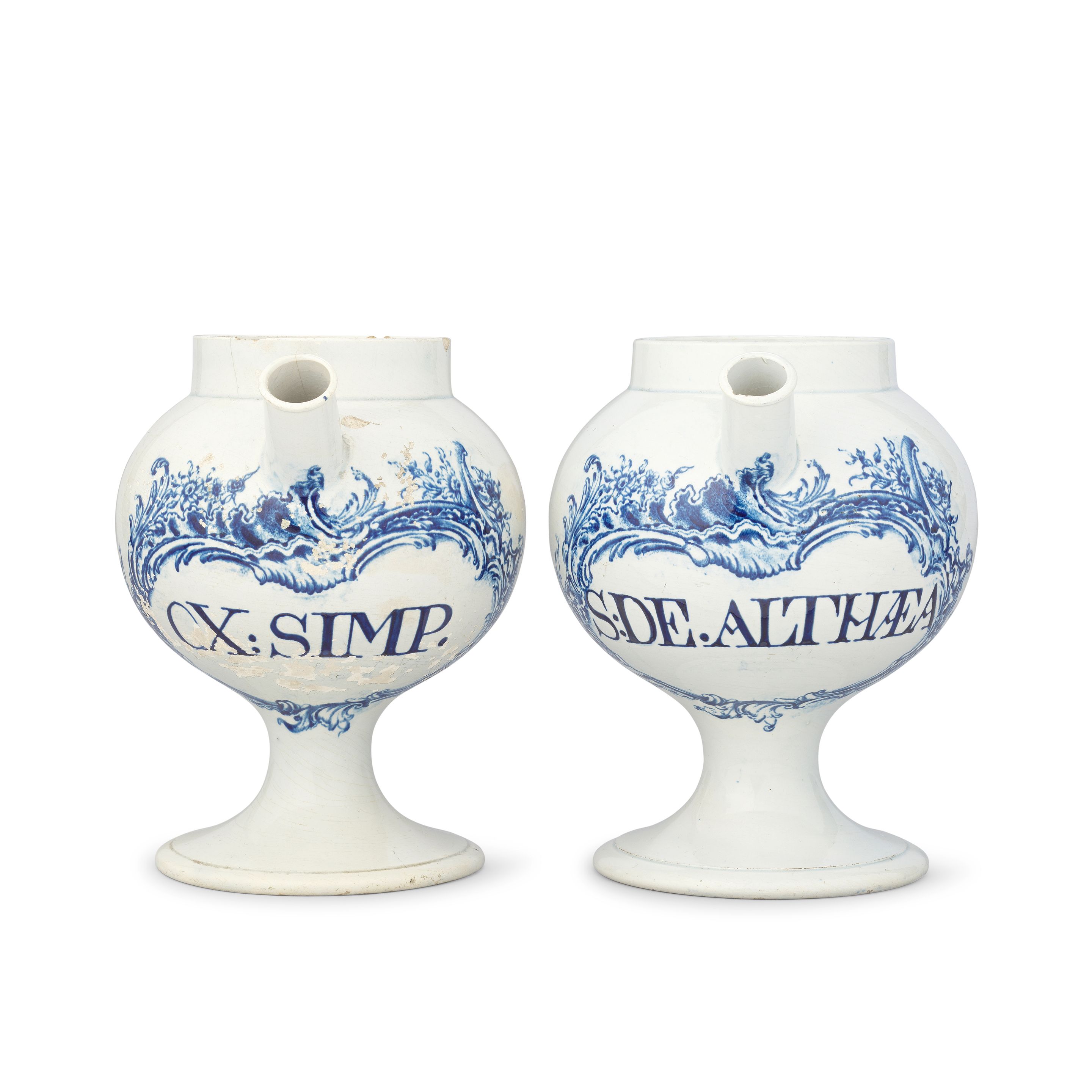 A rare pair of Turner pearlware apothecary syrup jars, late 18th century dimensions 17x28x17,5cm