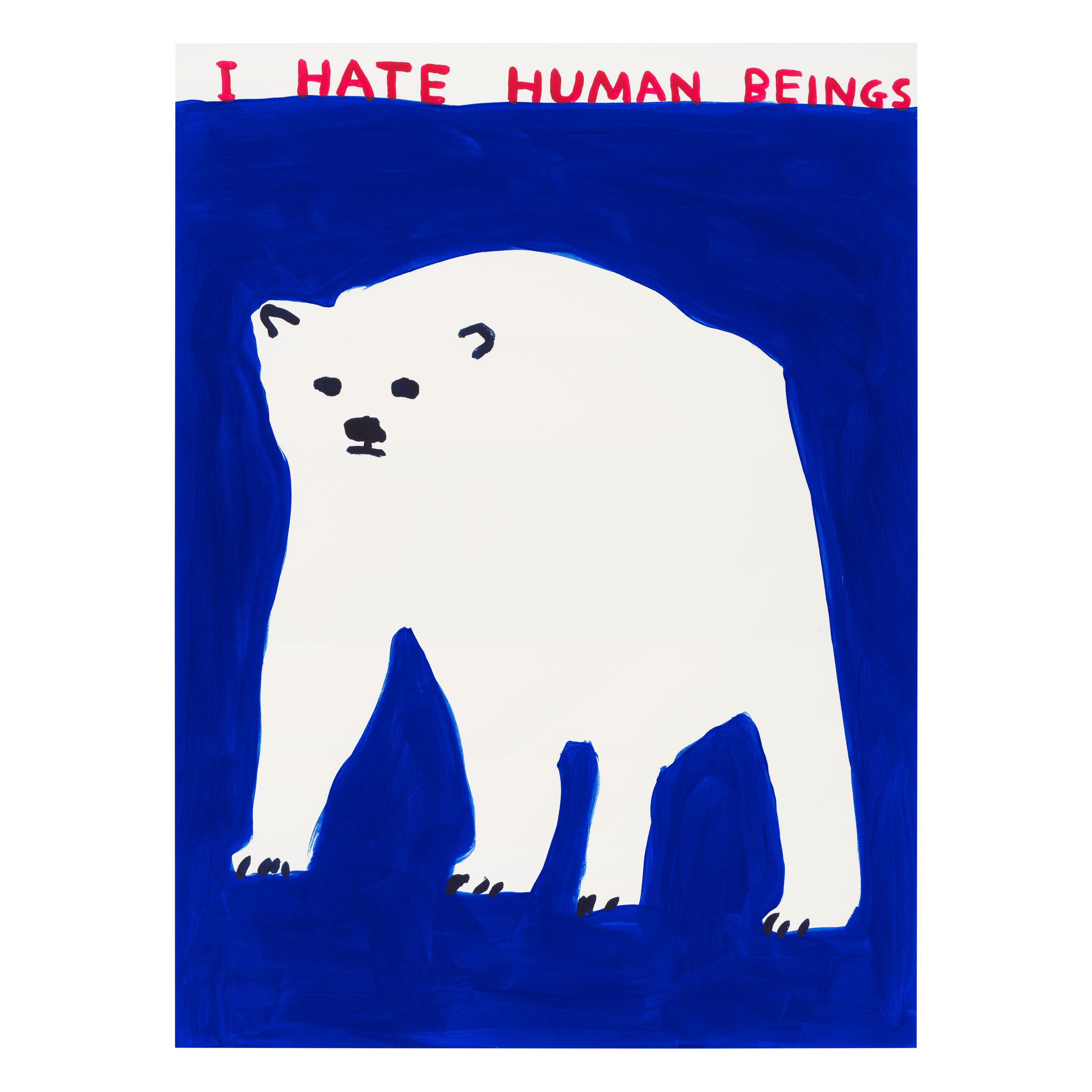 • Lot n° 12 David Shrigley (British, born 1968) I Hate Human Beings Screenprint in colours, 2022, on Somerset Satin wove paper, signed with the initials, dated and numbered 65/125 in pencil verso, published by Shrig Shop, Copenhagen, the full sheet, unframedSheet 760 x 560mm (29 7/8 x 22in)