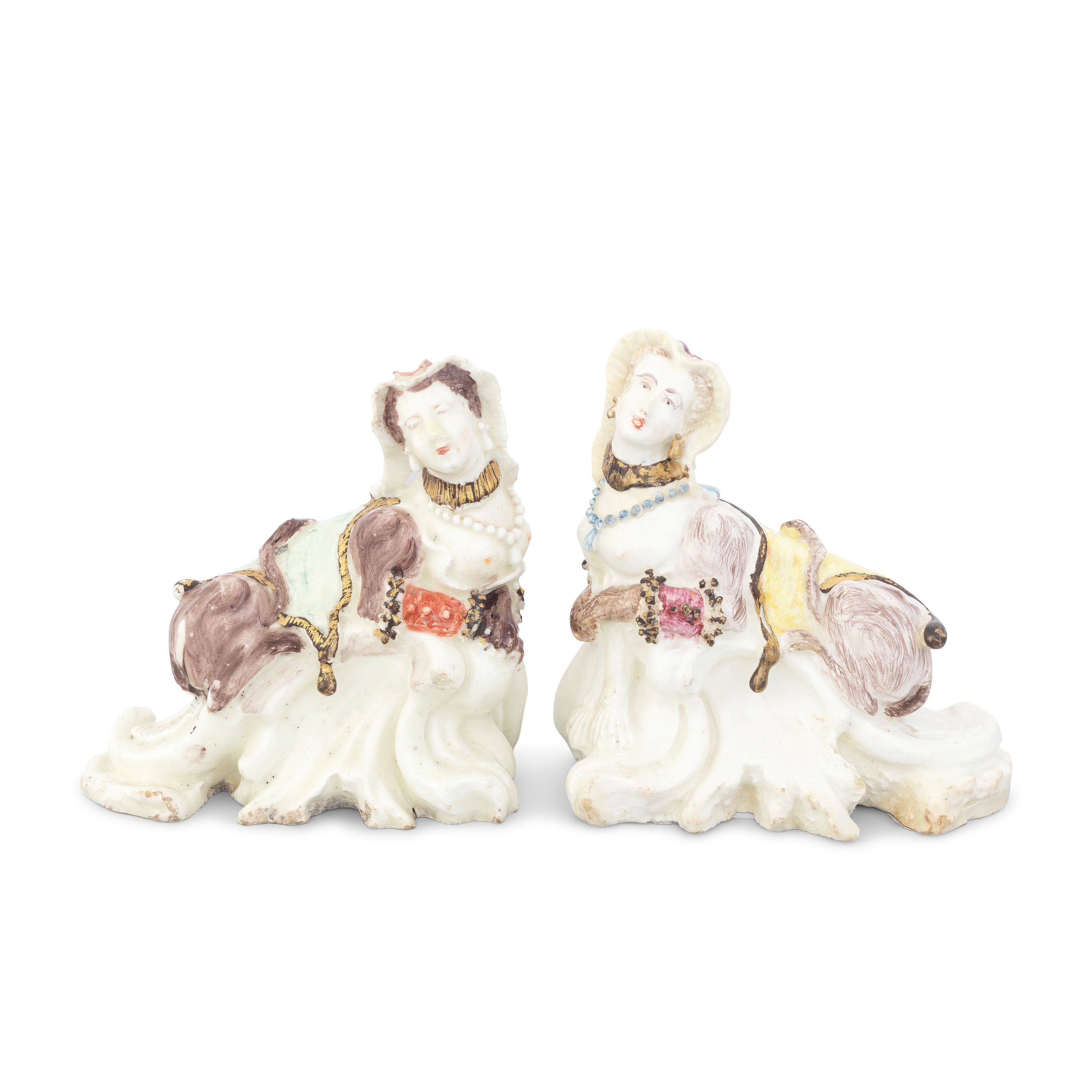 Two Bow models of sphinxes, circa 1750 Dim 14 x 14 x13 cm