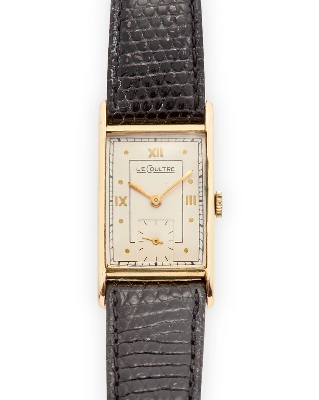 • Lot n° 613 LeCoultre. A 14ct gold manual wind rectangular wristwatch made for the American market Case...