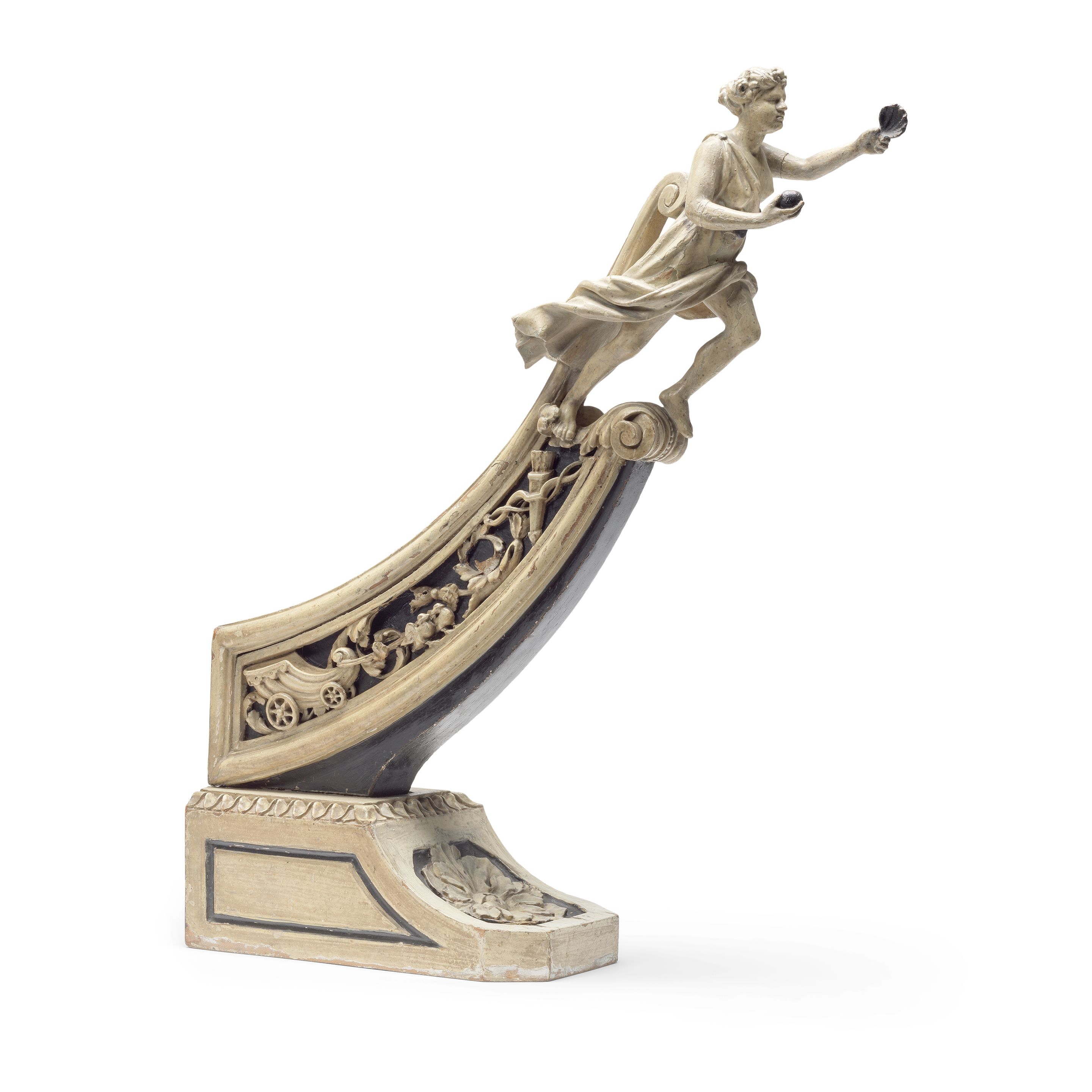 A rare female figurehead maquette, probably French or Danish, mid 18th century,