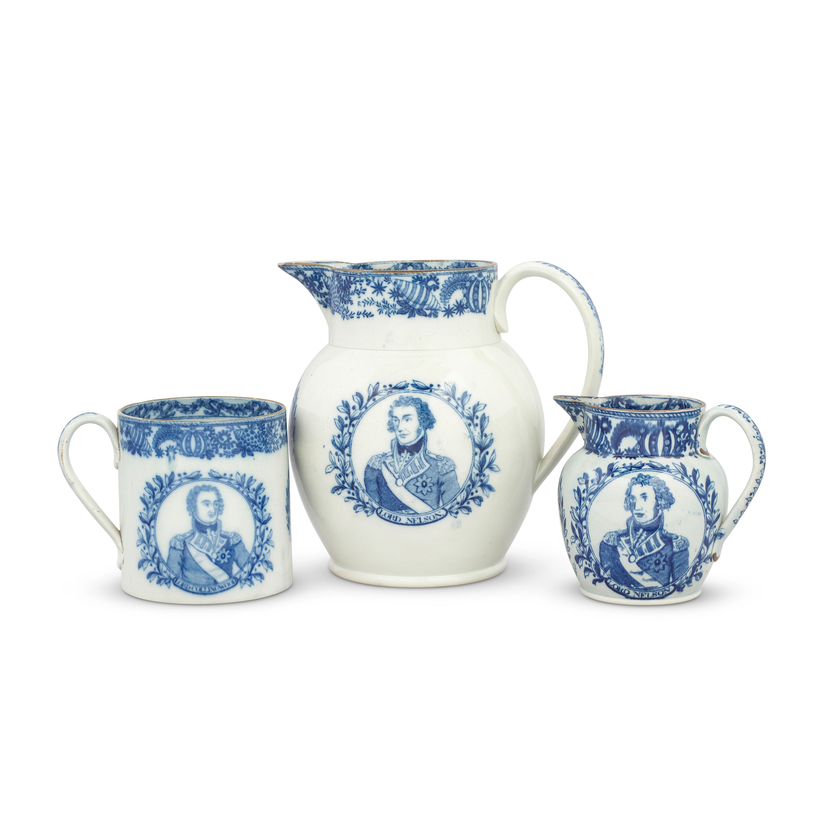 Nelson and Collingwood: Two pearlware jugs and a mug, early 19th century Nelson and Collingwood: Two pearlware jugs and a mug, early 19th century