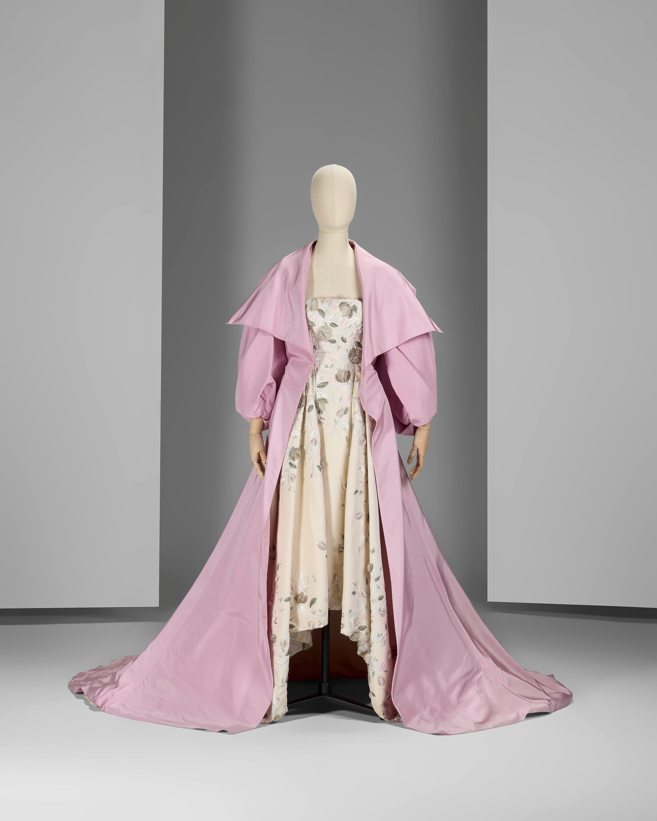 Ralph & Russo Haute Couture: a White Embroidered Gown and Pink Voluminous Coat Spring/Summer 2015, Runway Look 8