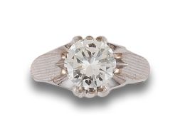 Sortija de caballero tipo solitario en oro blanco de 18 kt. con diamante central, engastado en garras, con un peso aproximado de 2.60 ct. y una estimación de color y pureza J / SI.