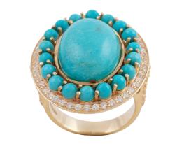SORTIJA EN PLATA DE LEY, TURQUESAS Y ZAFIROS BLANCOS