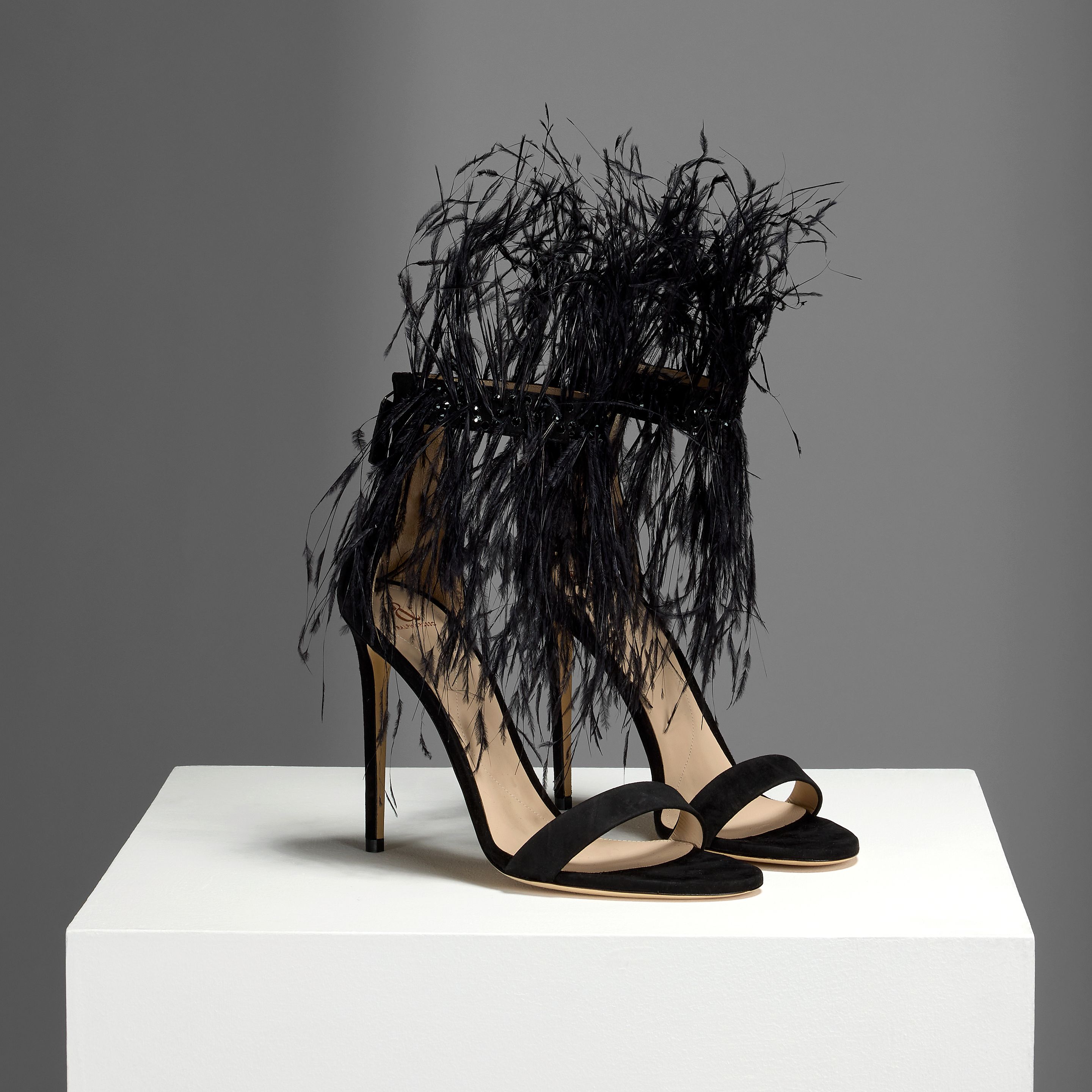 • Lot n° 45 Ralph & Russo Ready-to-Wear: Black Embroidered Suede Feather Sandals (includes dust bags and box)