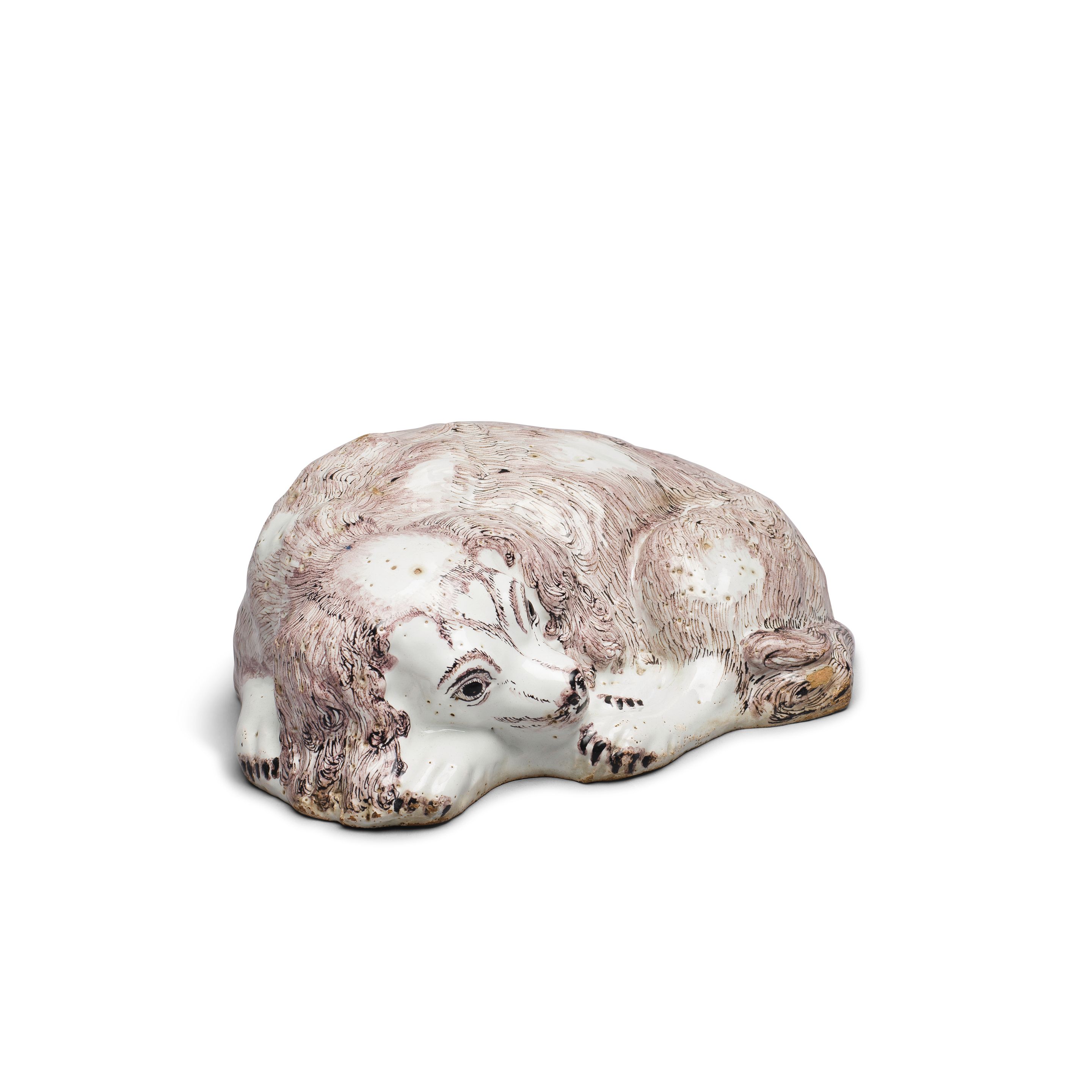 • Lot n° 4 A faience model of a recumbent spaniel, possibly German, circa 1770 Dim 22 x 22 x9 cm