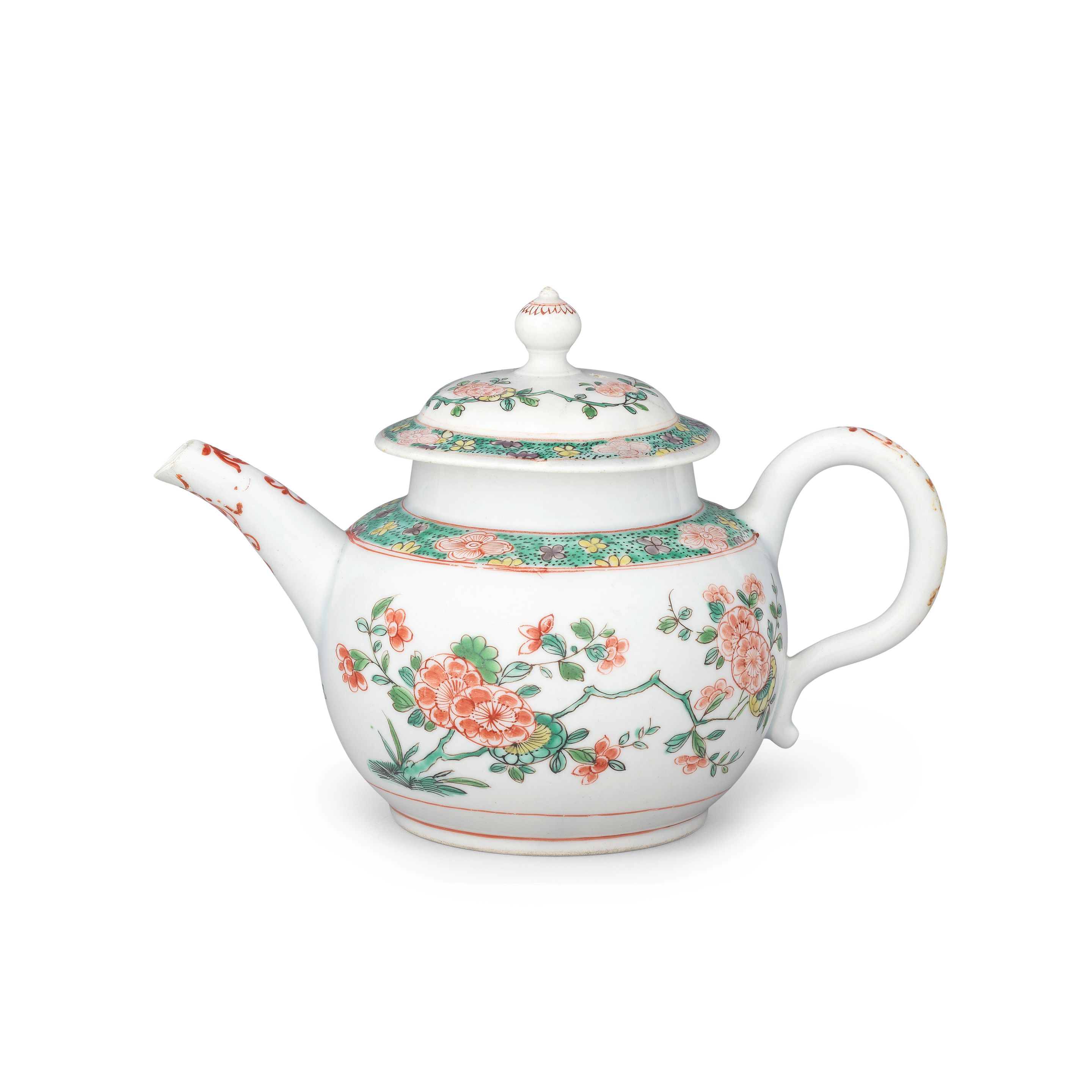 An important Bow 'mushroom-glazed' teapot and cover, circa 1746-48 dimensions 17x10x12cm