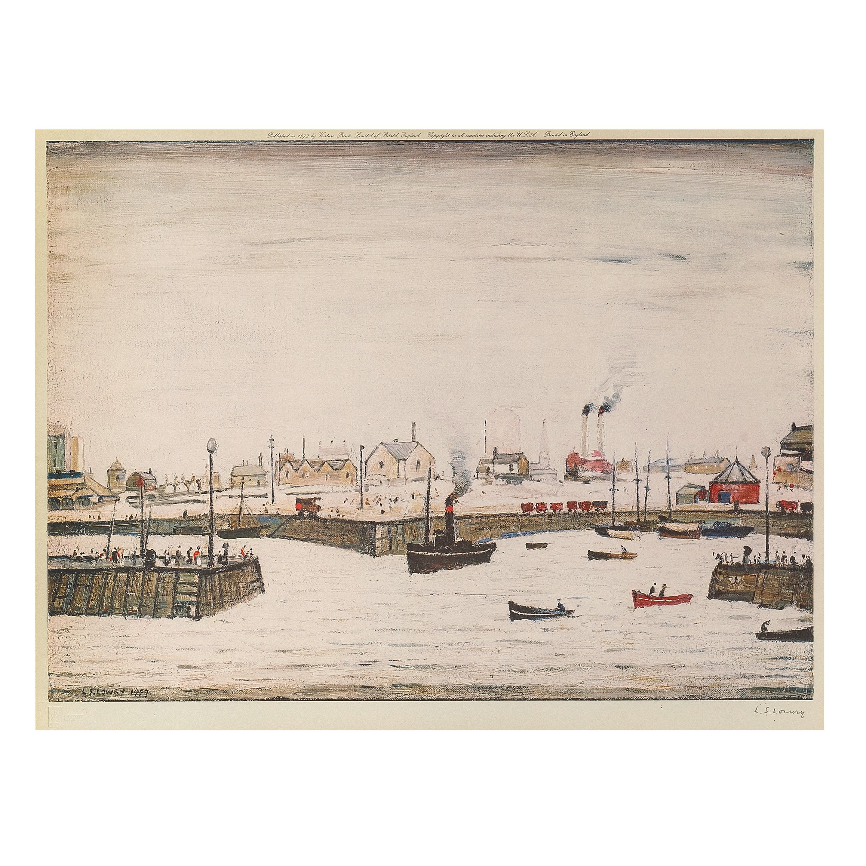 • Lot n° 135 Laurence Stephen Lowry R.A. (British, 1887-1976) The Harbour Offset lithograph in colours, 1972, on wove paper, signed in pencil, ink stamped '000113', from the edition of 850, published by Venture Prints Ltd., Bristol, with the Fine Art Trade Guild blindstamp, with margins, framedImage 406 x 559mm (16 x 22in)Sheet 543 x 684mm (21 3/8 x 26 7/8in)