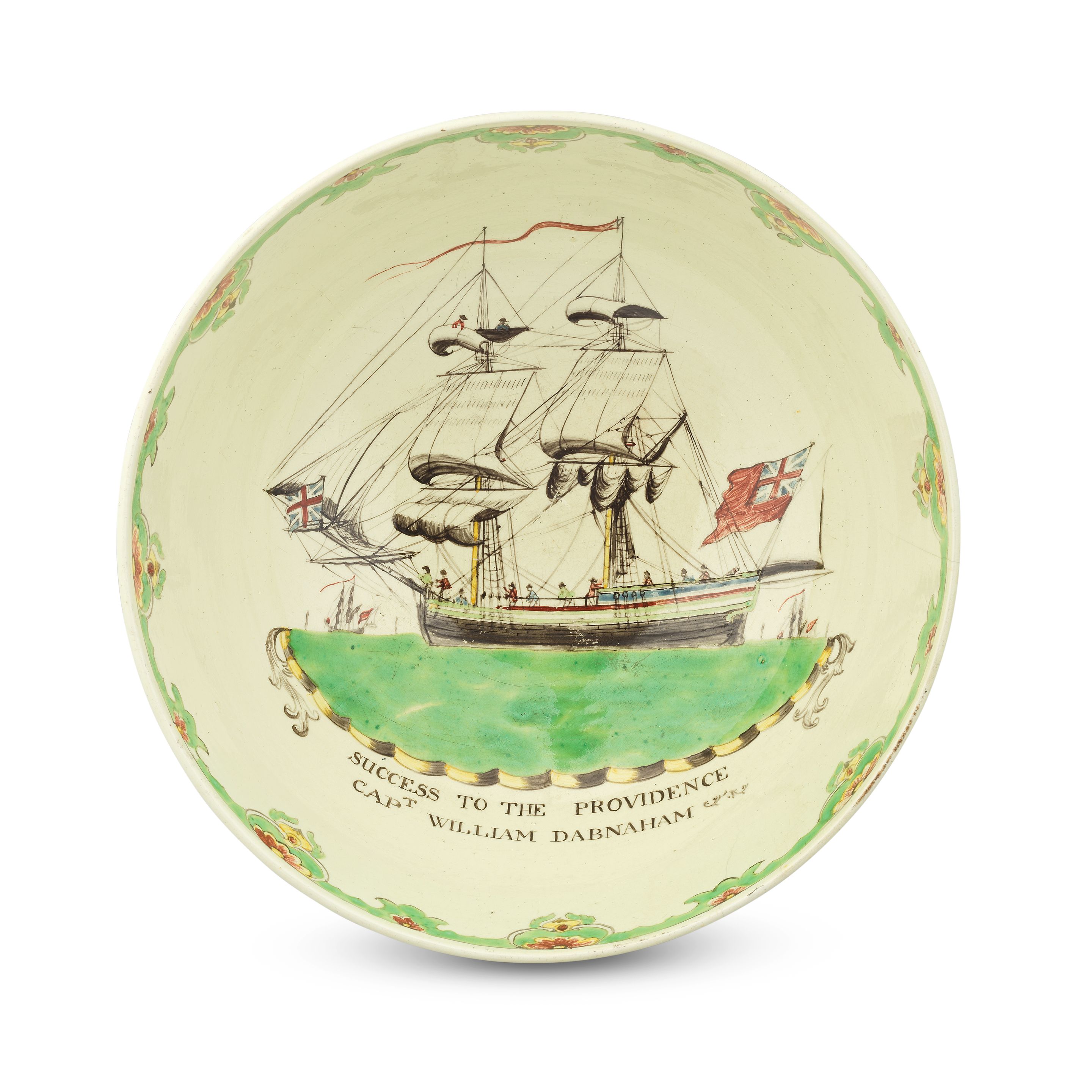 A Liverpool creamware 'ship' punch bowl, circa 1765-70 dimensions 29,5x29,5x13cm