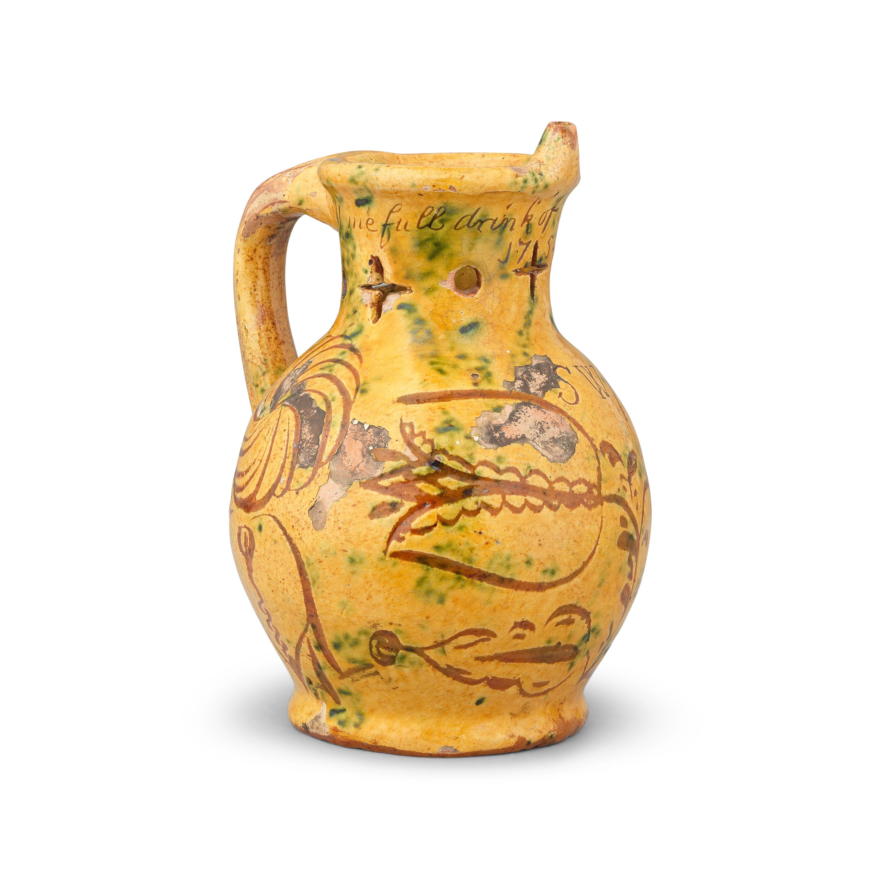 • Lot n° 83 A Donyatt slipware puzzle jug, dated 1754 dimensions 13x16,5x21cm