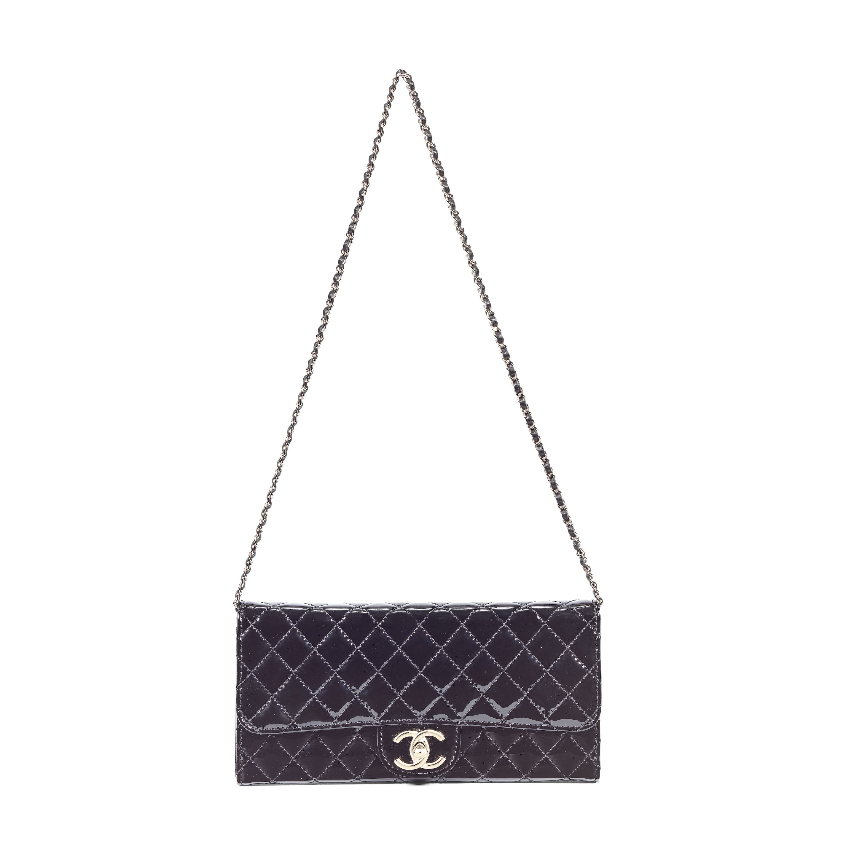 • Lot n° 193 Chanel: a Black Patent Leather East West Wallet on Chain (WOC) 2011 (includes serial sticker, authenticity card, dust bag and box) 7 x 30 x 17 cm