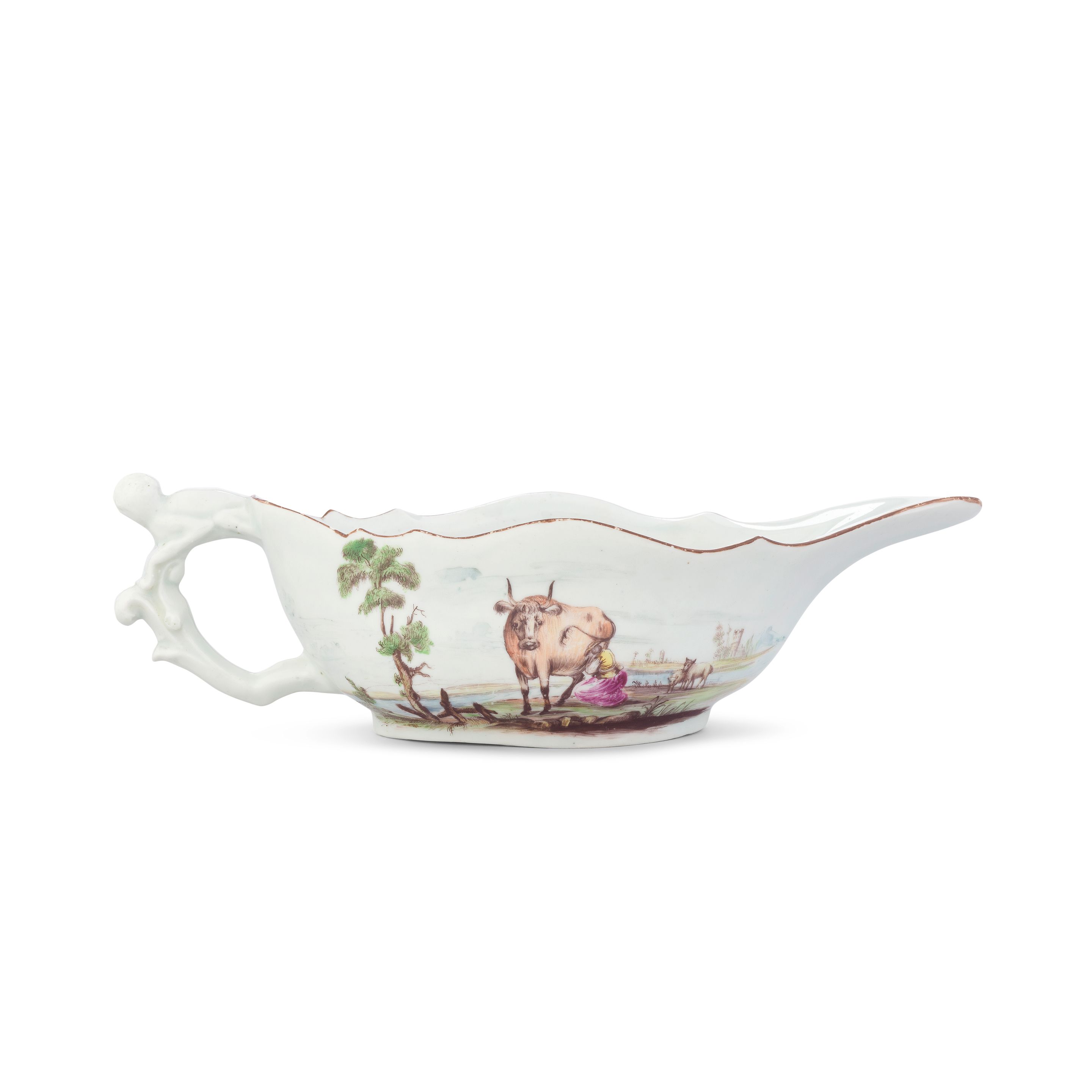 An extraordinary Vauxhall sauceboat, circa 1754-55 Dim 21 x 10 x5,5 cm