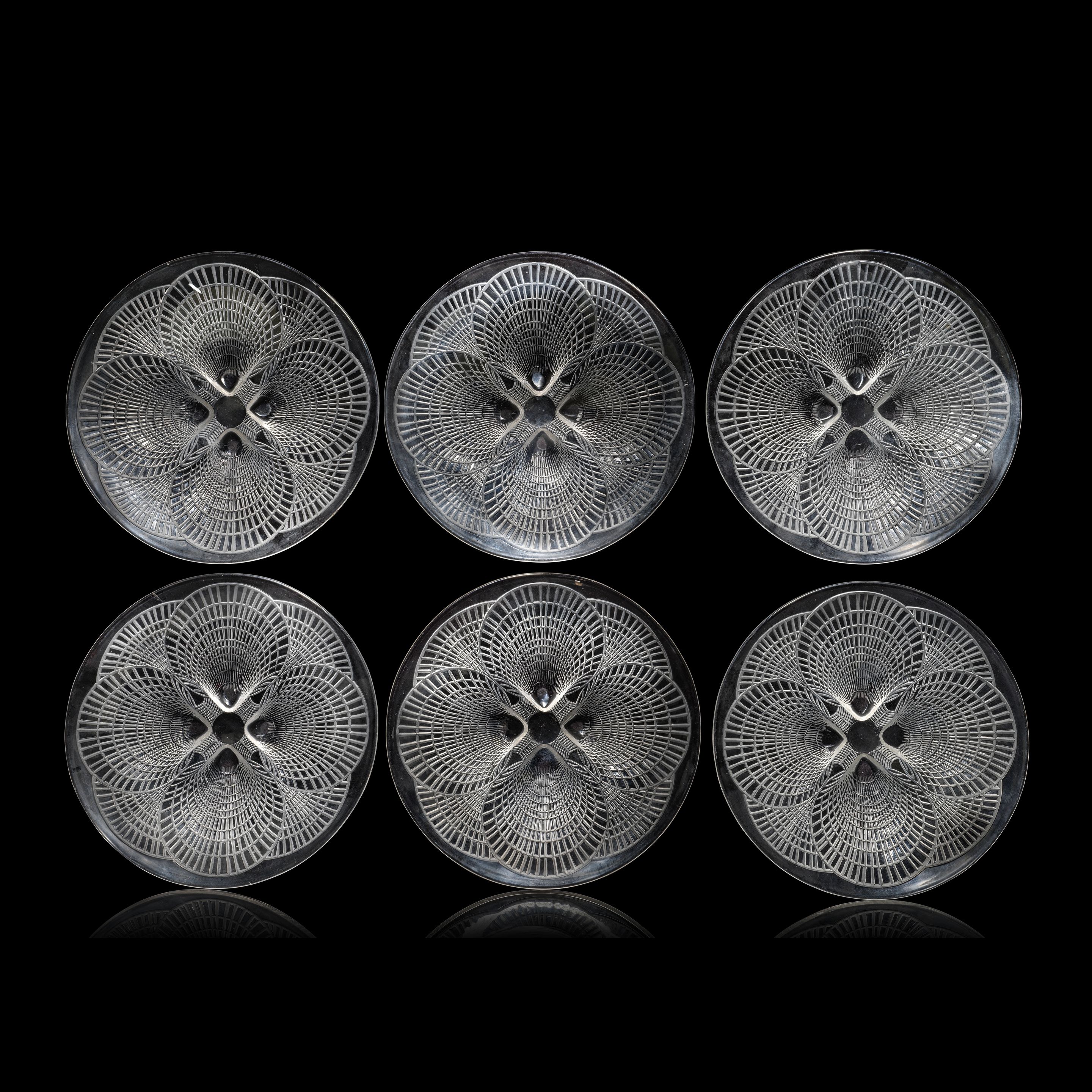 • Lot n° 11 René Lalique Six 'Coquilles No. 2' plates, designed 1924 21x21x3cm
