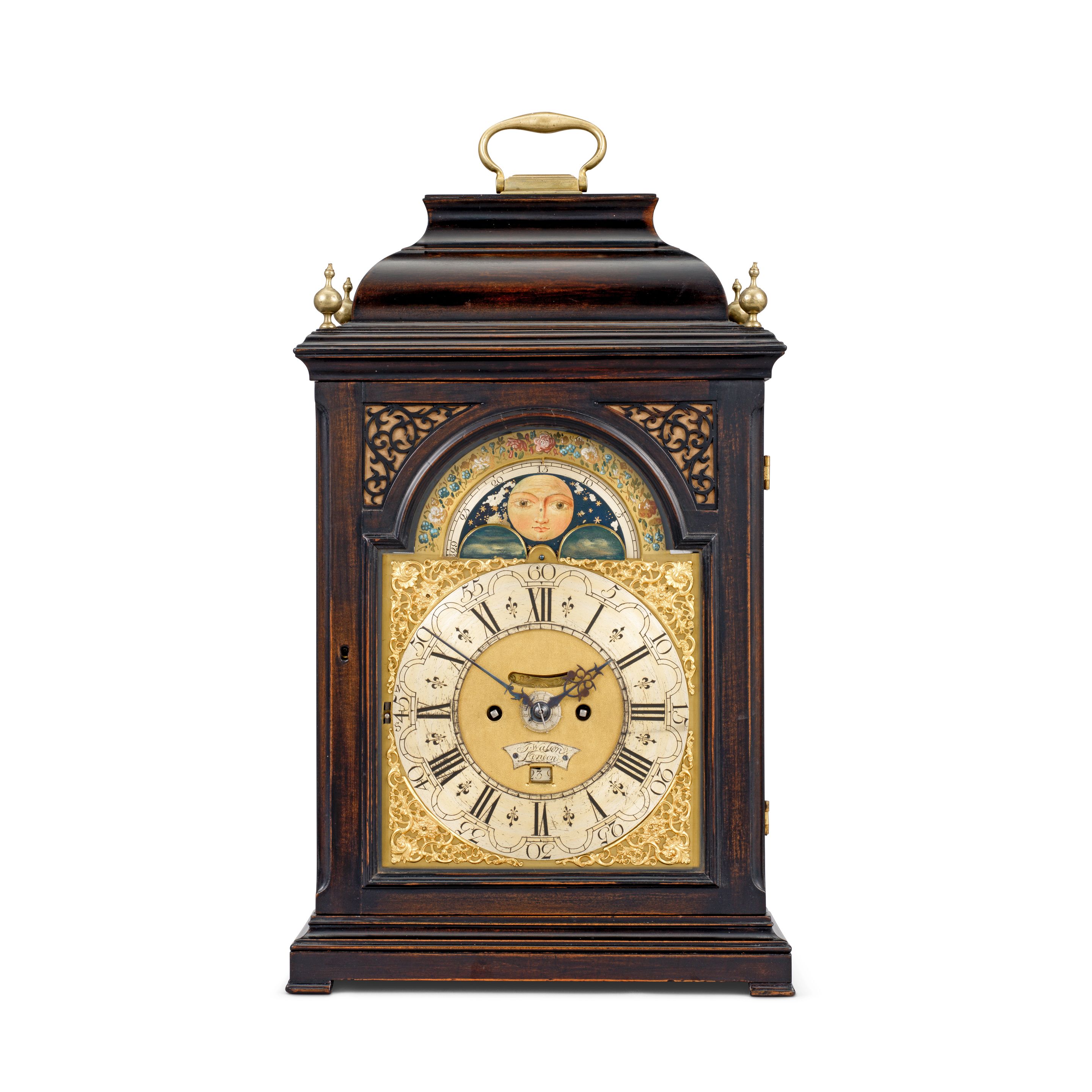 An 18th century Dutch market ebonised quarter striking table clock J. Watson, London Dim 8 x 12 x22 Dim 8 x 12 x22 cm