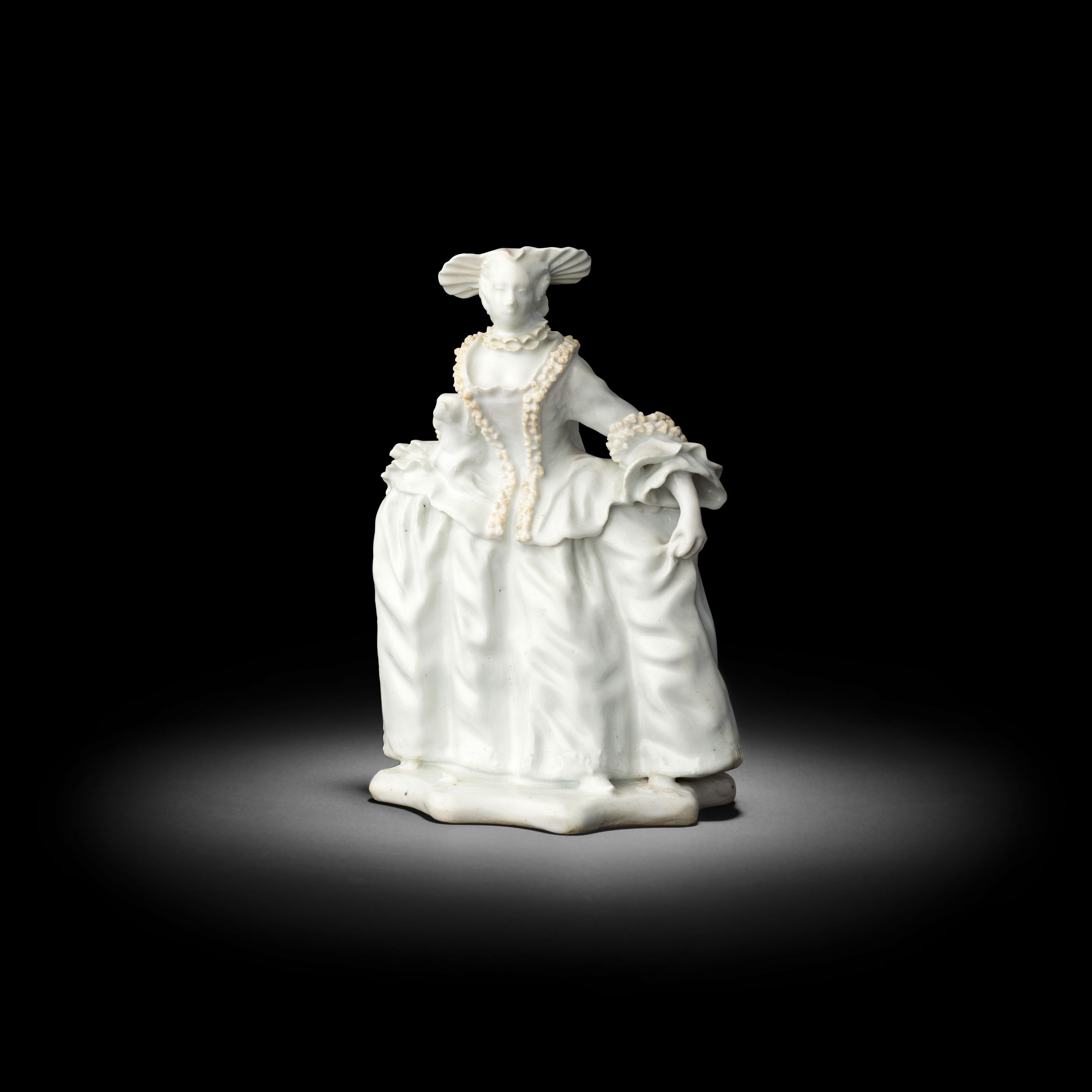 A Derby white figure of Kitty Clive, circa 1750-52 Dim 13 x 16 x23 cm