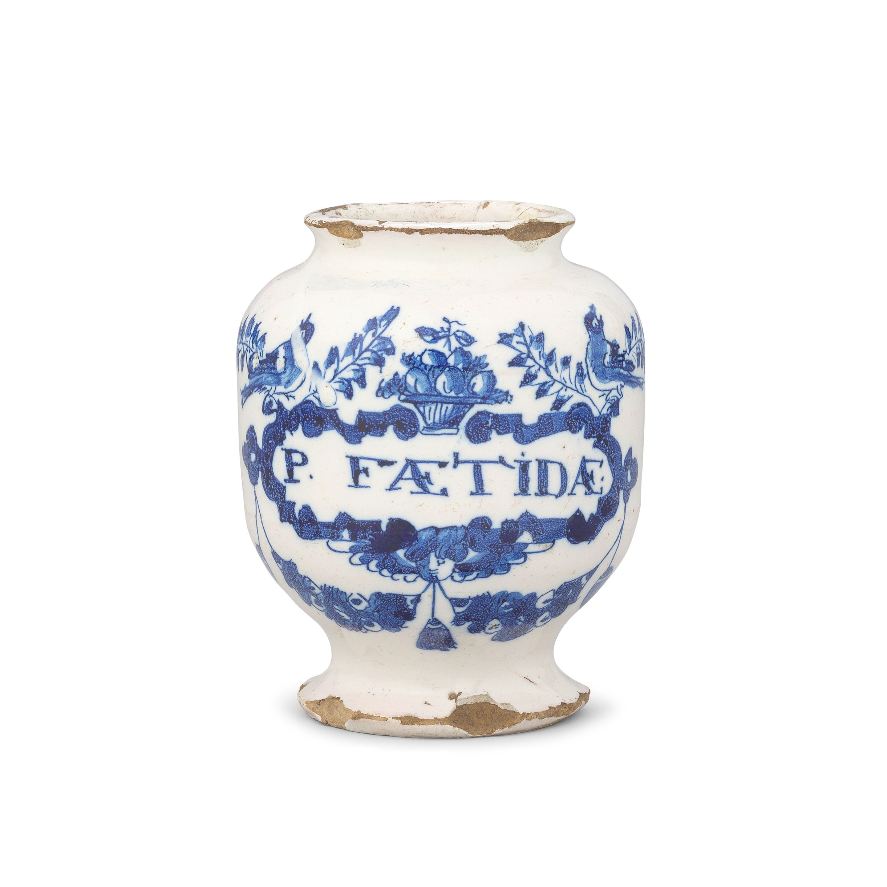 • Lot n° 104 A rare English delftware pill jar, circa 1700-20 dimensions 8x8x9,7cm
