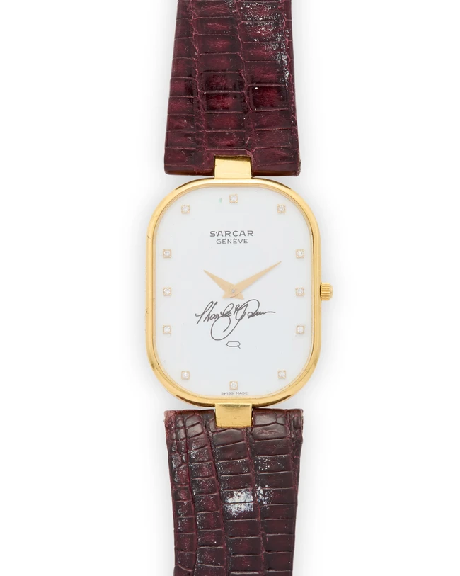 • Lot n° 633 Sarcar. An 18ct gold quartz diamond set wristwatchNumbered 9089-22Quartz movement, white dial...