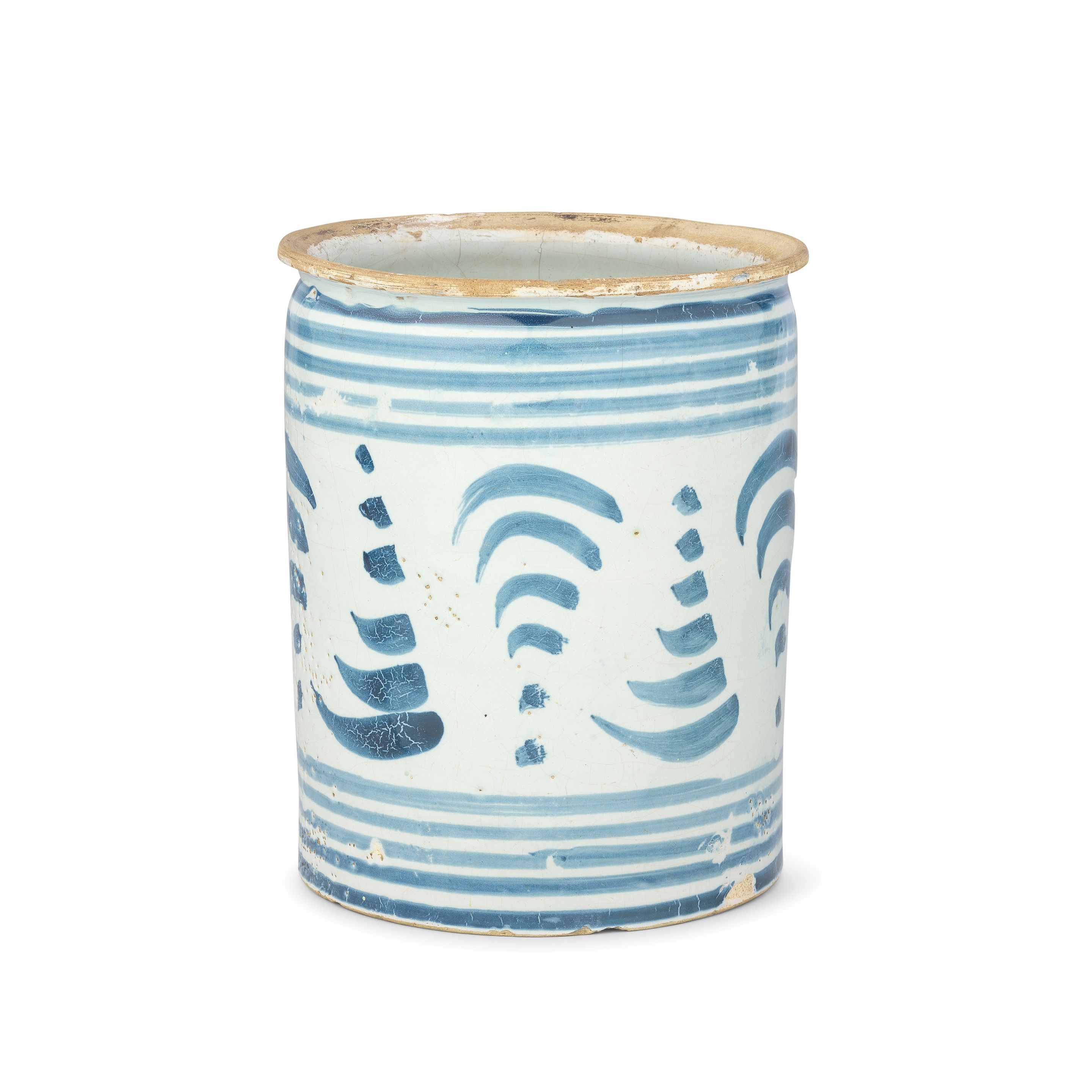 An English delftware pharmacy storage jar or albarello, early 18th century dimensions 14,5x14,5x17,4cm