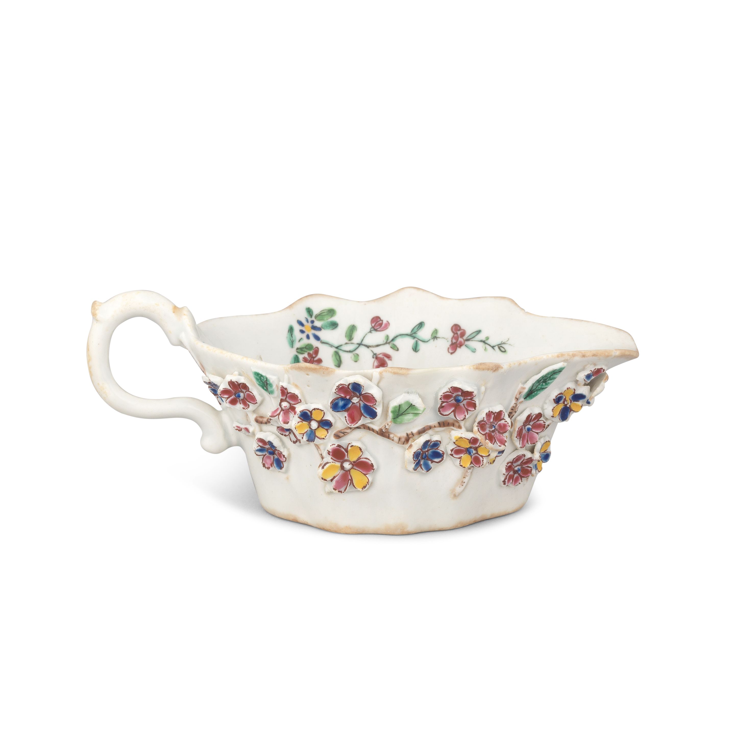 • Lot n° 143 An interesting, early Bow 'mushroom-glazed' sauceboat, circa 1746-48 dimensions 13,3x8x5,5cm