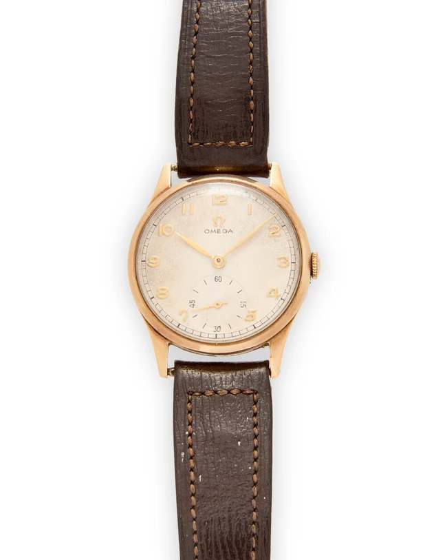 Omega. A 9ct gold manual wind wristwatchCase number 13322, Movement number 12617388, Birmingham...