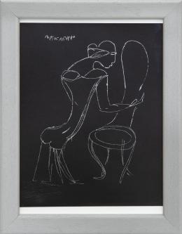 • Lot n° 80 DAMA CON SILLA Medidas: 21,5 x 17cm el papel. 27 x 21cm con marco