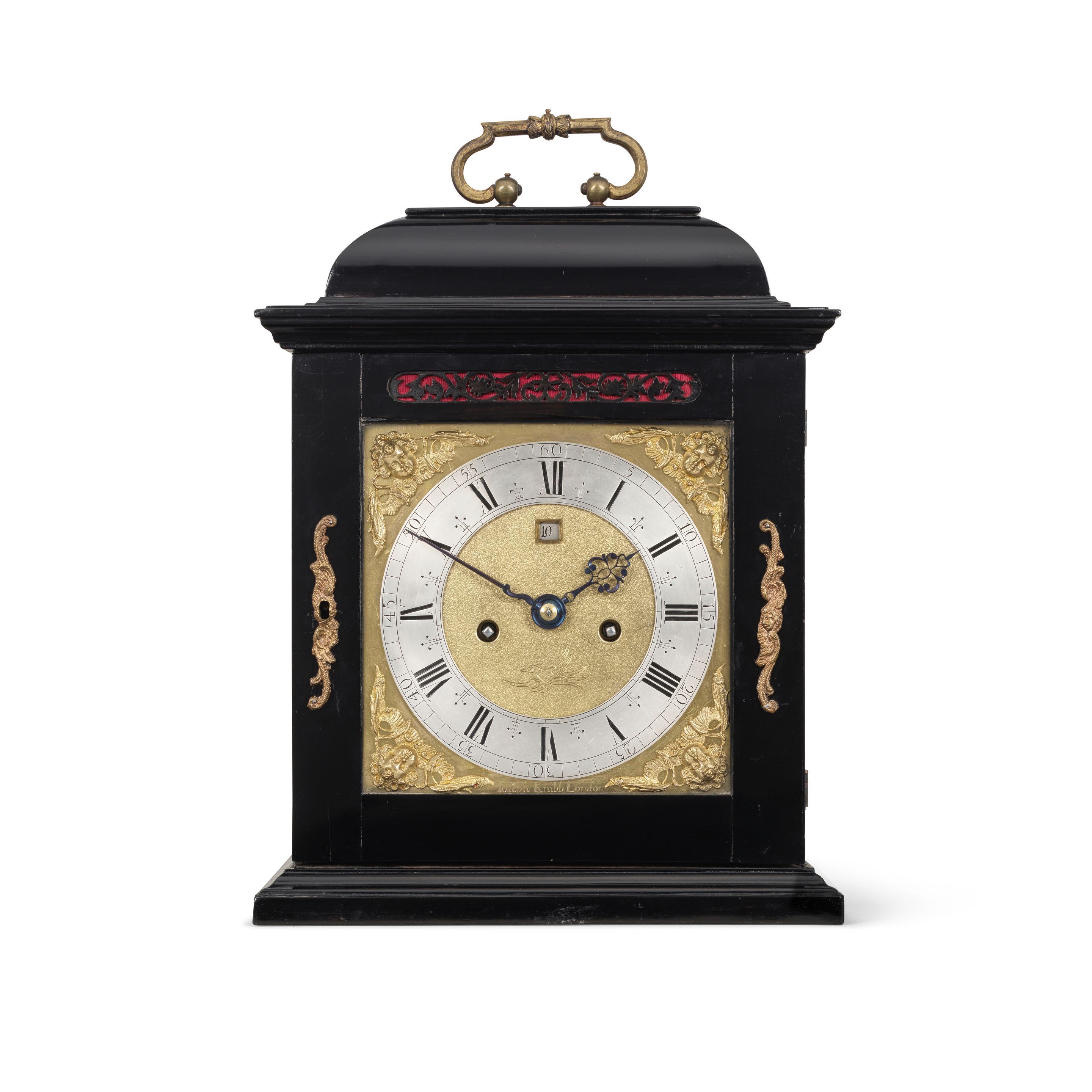 An ebonised striking table clock The backplate signed Joseph Knibb, London. Dim 7 x 10 x14,5 Dim 7 x 10 x14,5 cm