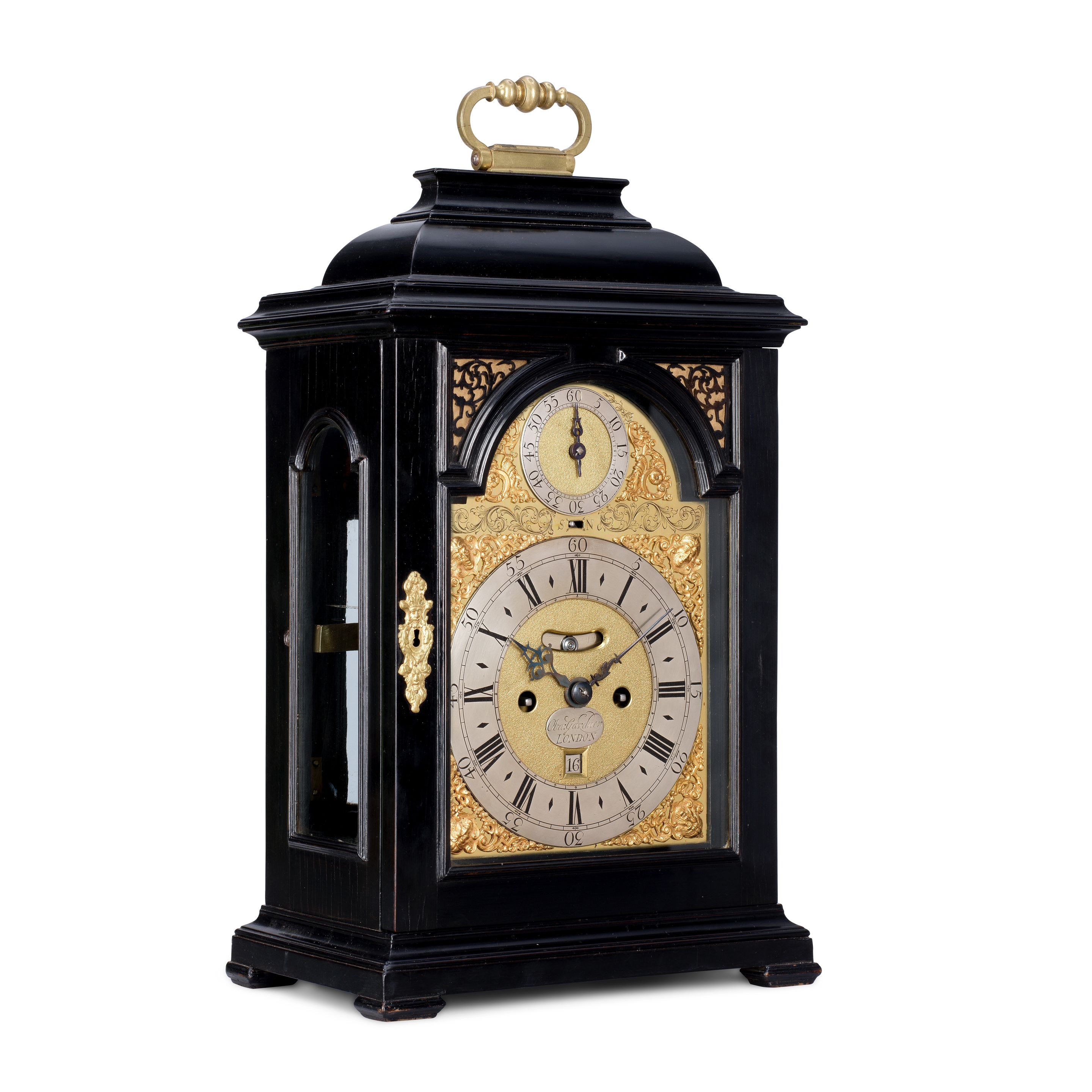 • Lot n° 79 A good early 18th century ebony veneered quarter repeating table clock Obadiah Gardiner, London Dim 7 x 10,5 x19 Dim 7 x 10,5 x19 cm