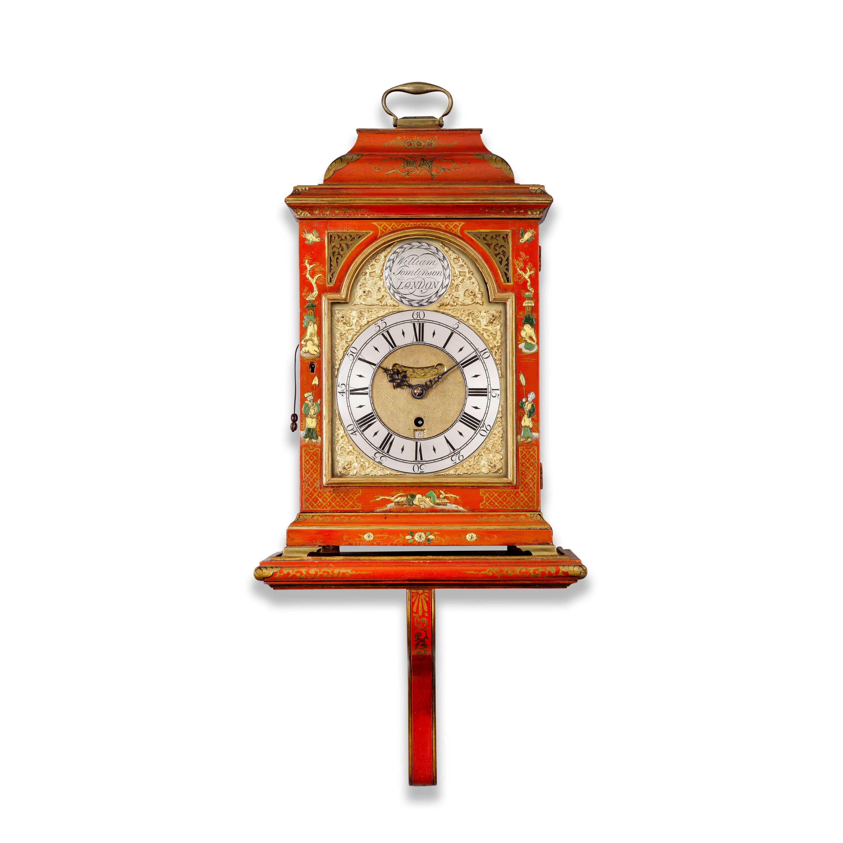 • Lot n° 118 A first half of the 18th century Chinoiserie-decorated quarter-repeating bracket timepiece William Tomlinson, London Dim 7 x 11 x19 Dim 7 x 11 x19 cm
