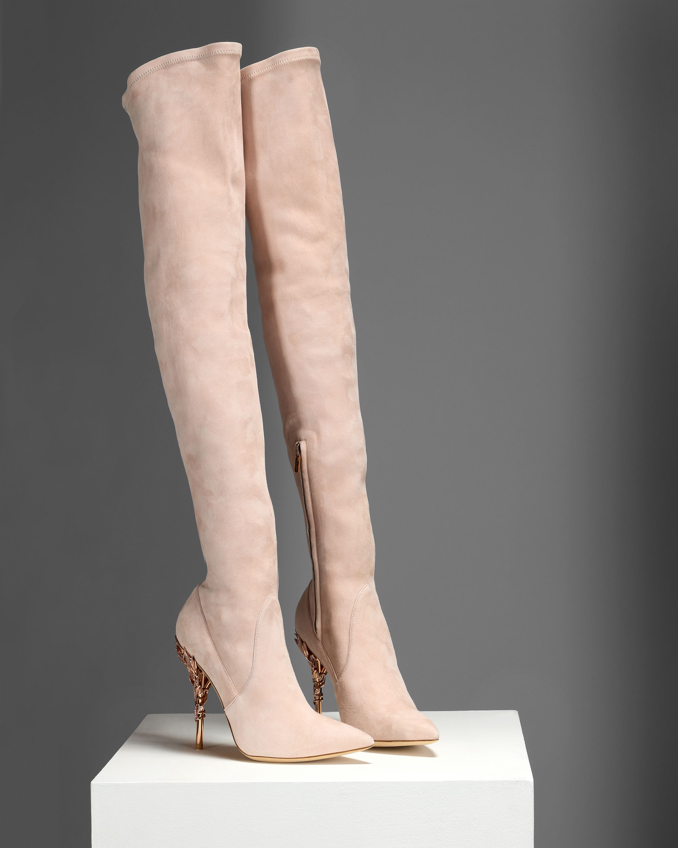 Ralph & Russo Ready-to-Wear: Pale Pink Suede Eden Over-the-Knee Heeled Boots (includes dust bags and box)