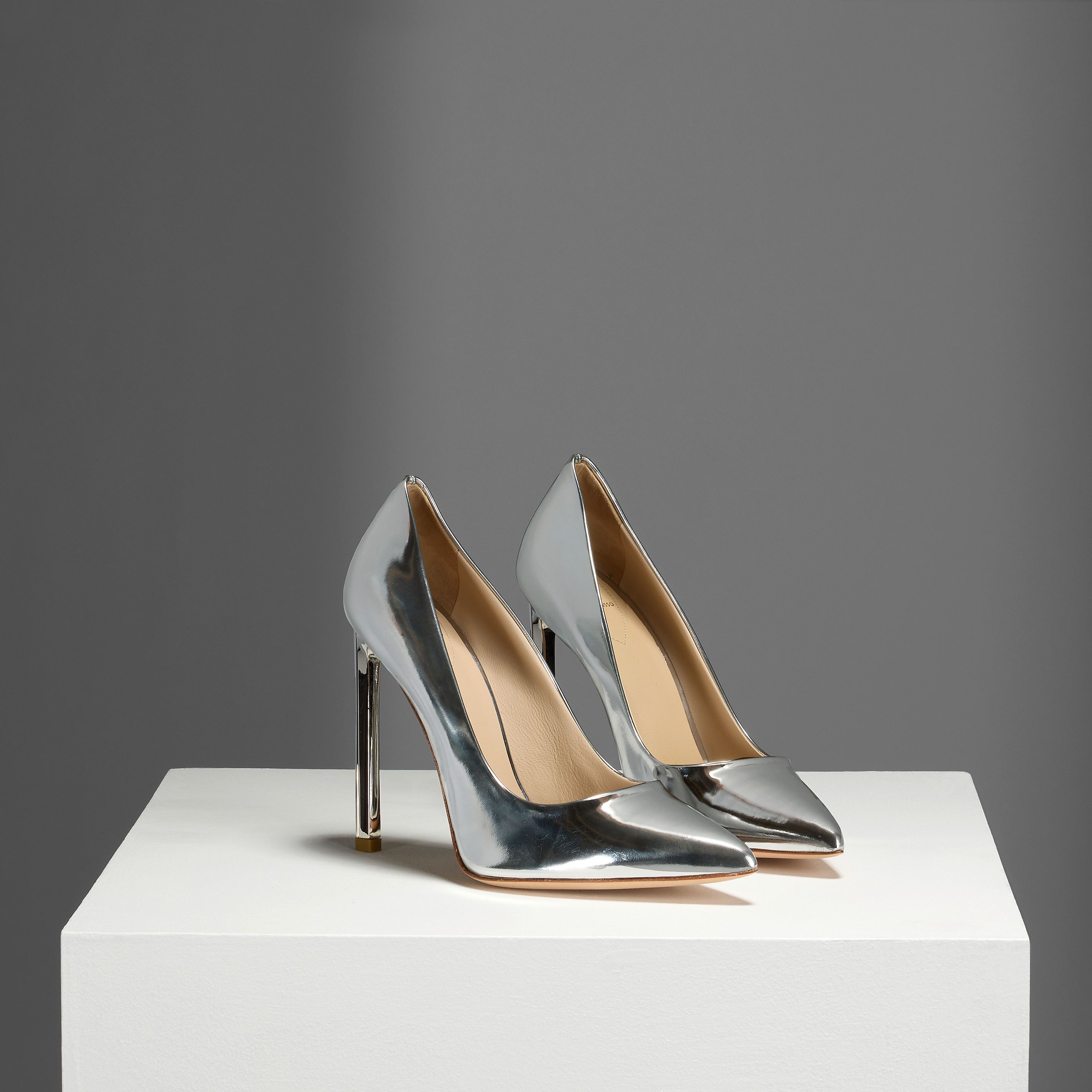 Ralph & Russo Ready-to-Wear: Metallic Silver Patent Leather Empire Pumps (includes dust bags and box)