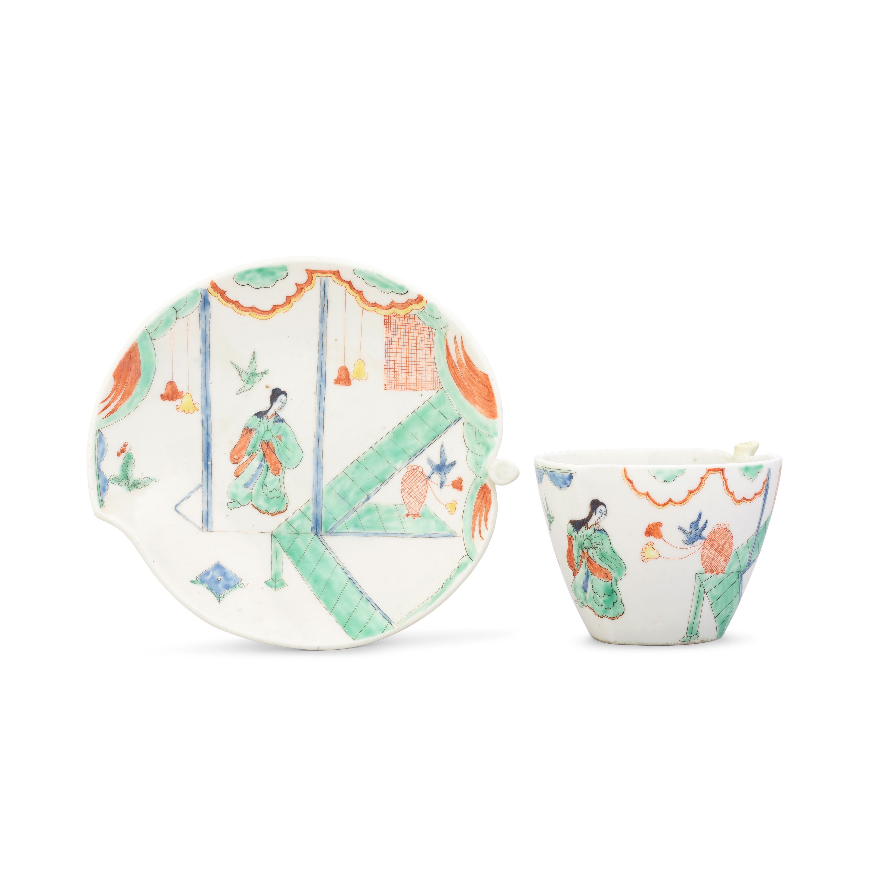 A rare Chelsea peach-shaped cup and stand, circa 1750-52 Dim 15 x 14 x9 cm