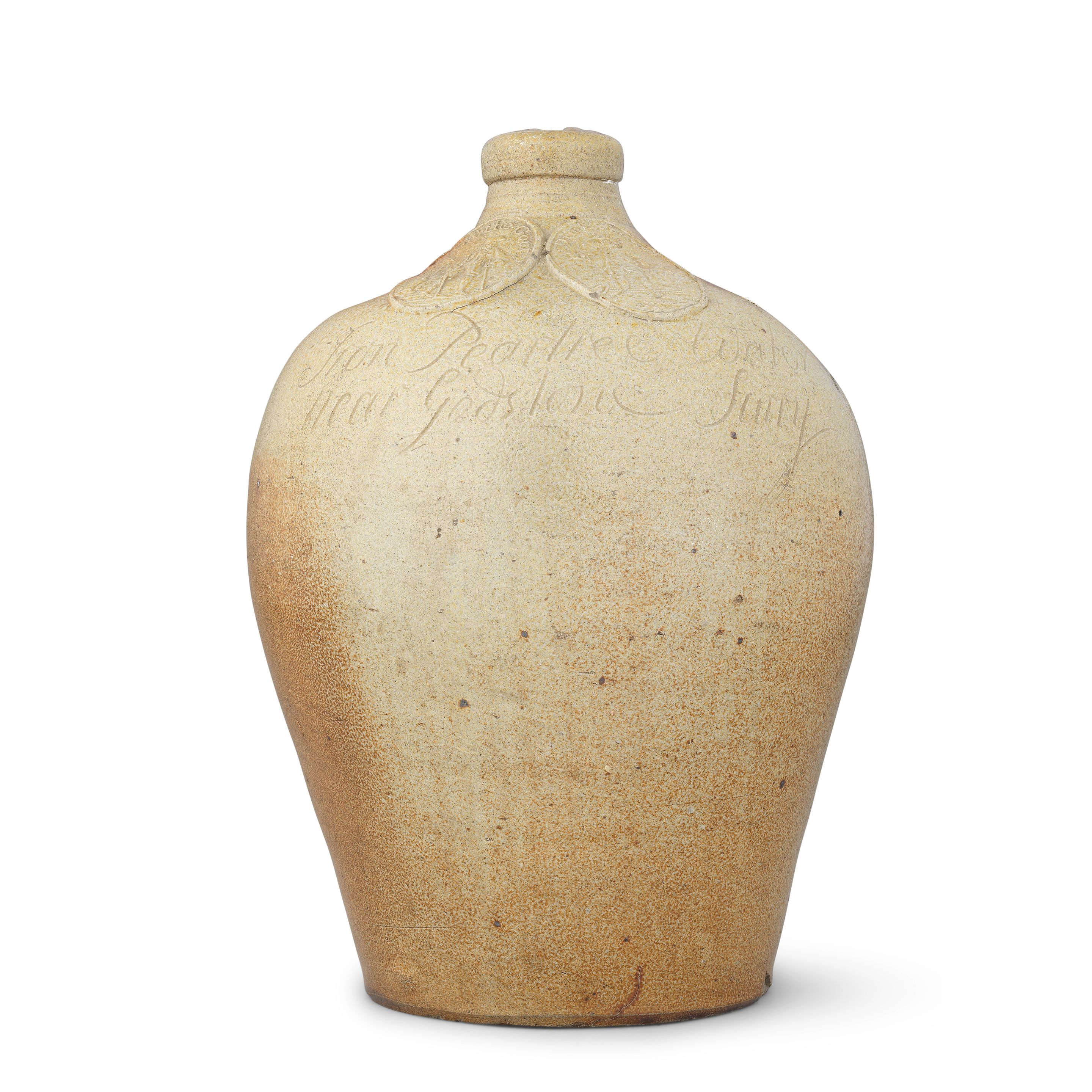 A Godstone 'Iron Pear Tree' saltglaze stoneware gout water bottle, circa 1752 dimensions 30x30x39cm