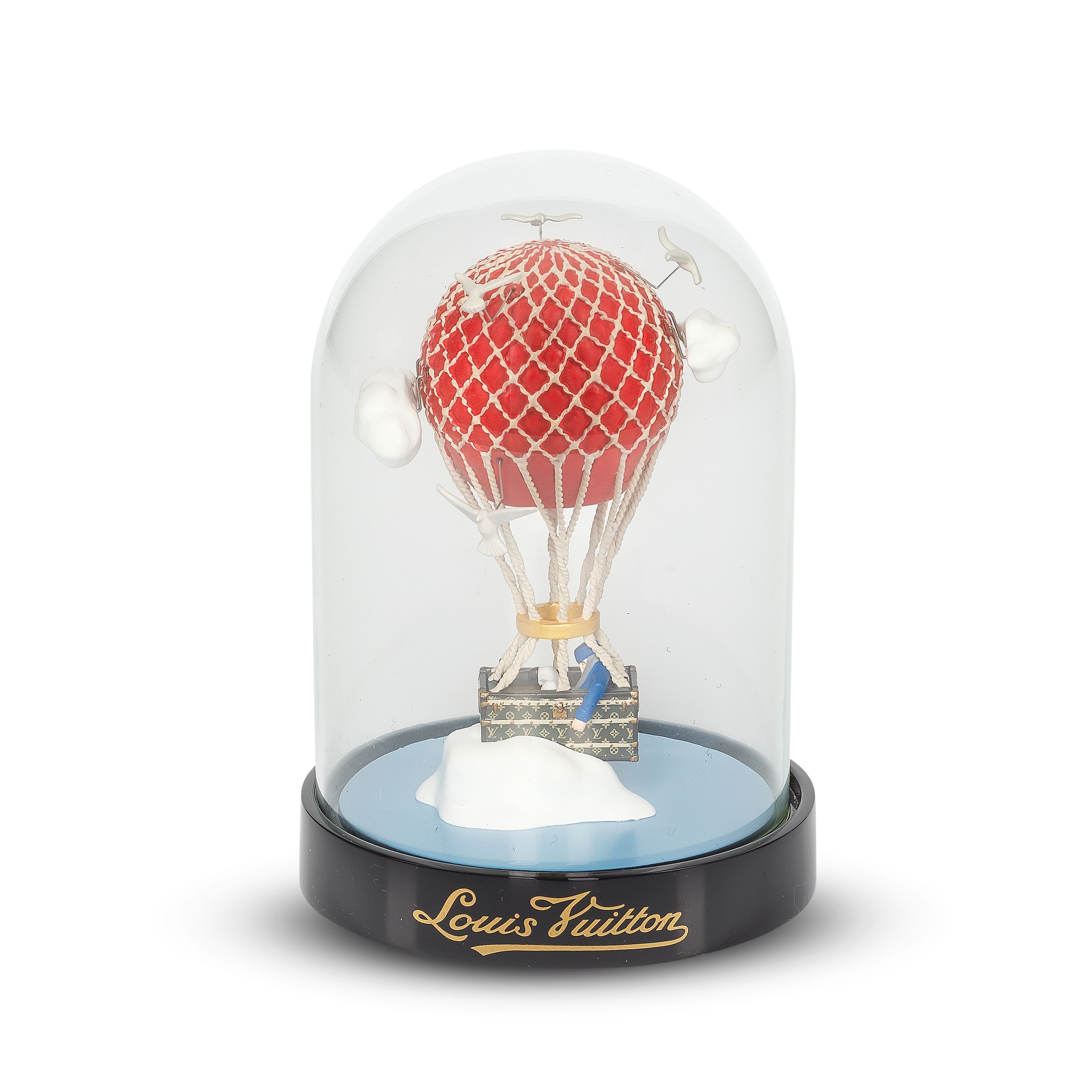 The Air Balloon dome draws inspiration from a 1910s drawing by Pierre-Émile Legrain, depicting a man asleep inside a Louis Vuitton trunk, which serves as the gondola of a hot-air balloon.