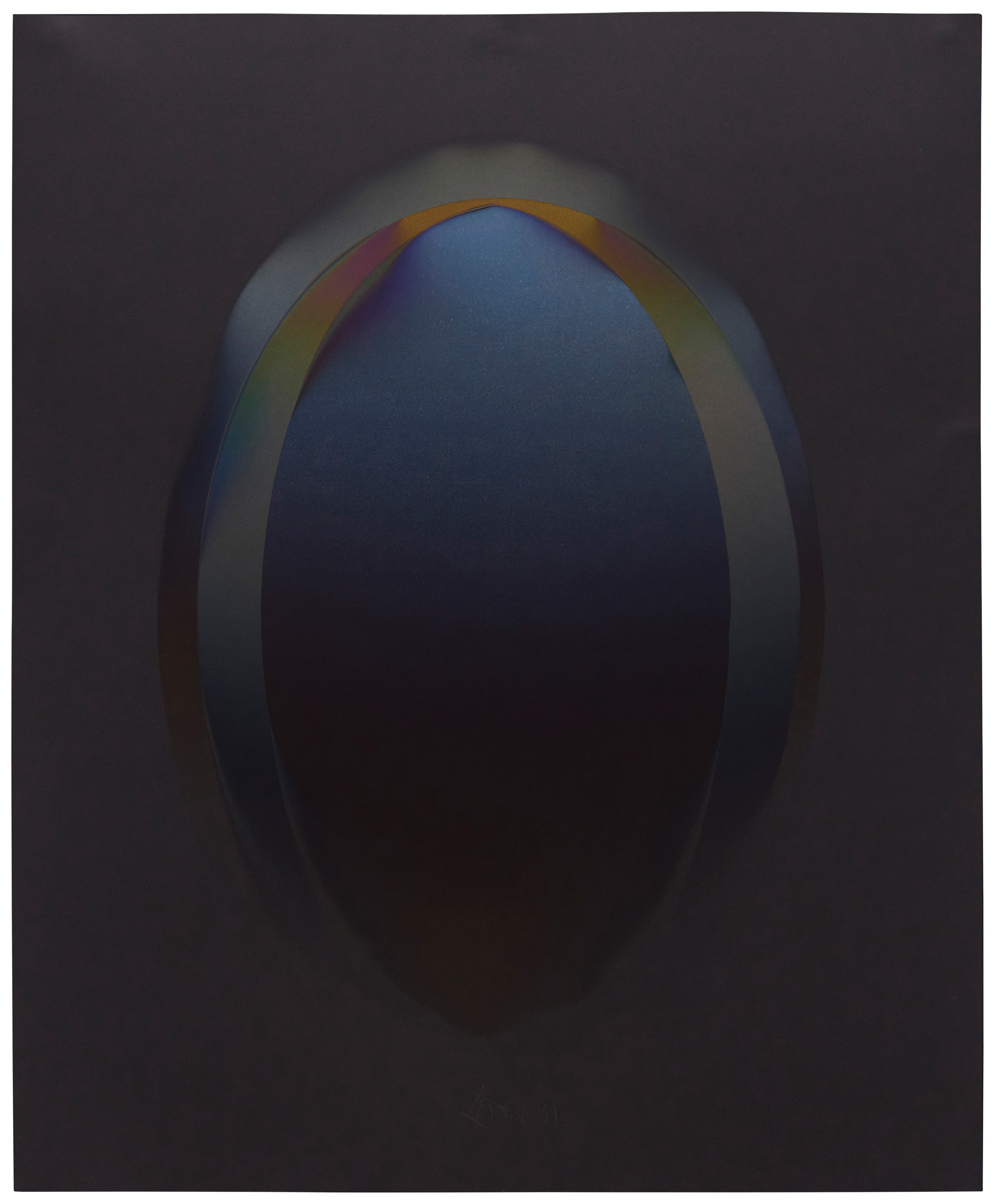 Larry Bell (b. 1939) "Ellipse," 1964 Vaporized aluminum on black Arches paper Signed and dated in pencil along the center of the lower edge: LBell 64 Sheet: 29.5" H x 24" W Provenance: Estate of Robert Baron, Huntington Beach, CA