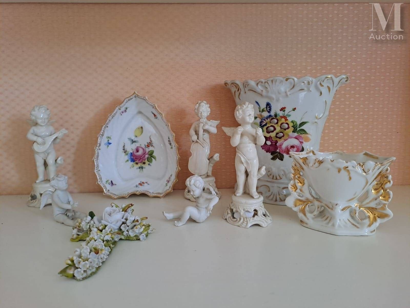 • Lot n° 165 Faïence de Digoin Suite de 12 assiettes à dessert, décor imprimé, le marli orné de vanneries, représentant tous les mois de l'année. D : 18 cm