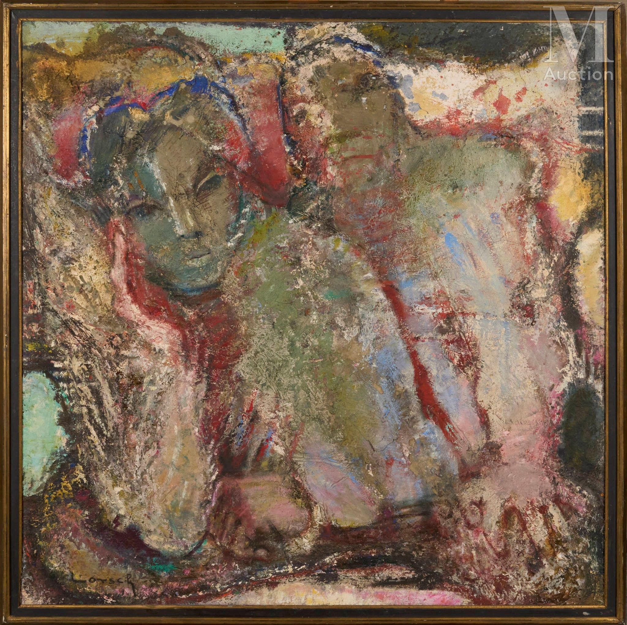 • Lot n° 284 Dominique LORSCH (1937-1990) Personnages rouges et noirs Huile sur toile signée en bas à droite, contresignée et titrée au dos 195 x 130 cm Provenance: Collection particulière, Paris