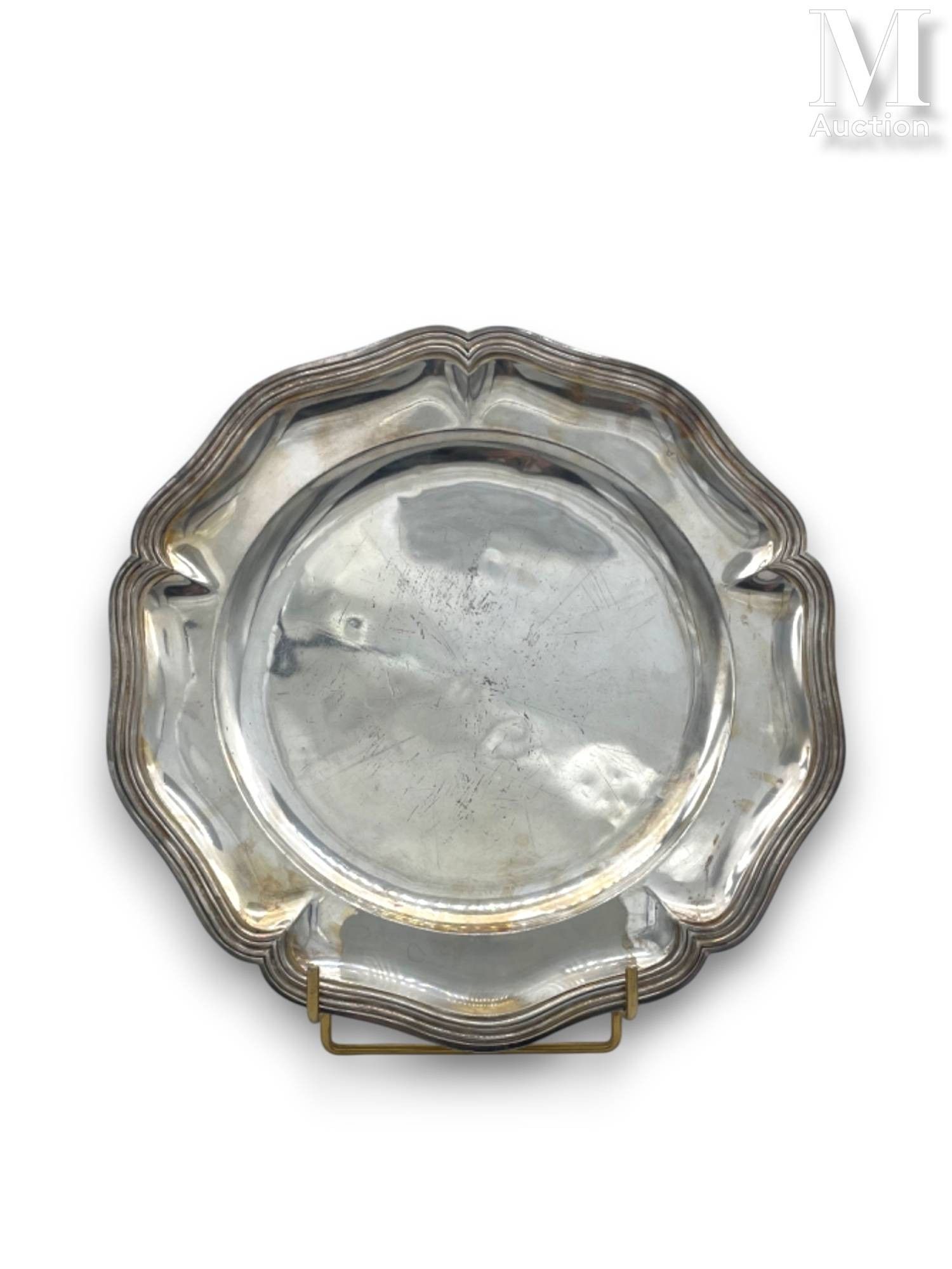 • Lot n° 72 Plat rond en métal argenté; modèle style contour Louis XV D: 33 cm (rayures)