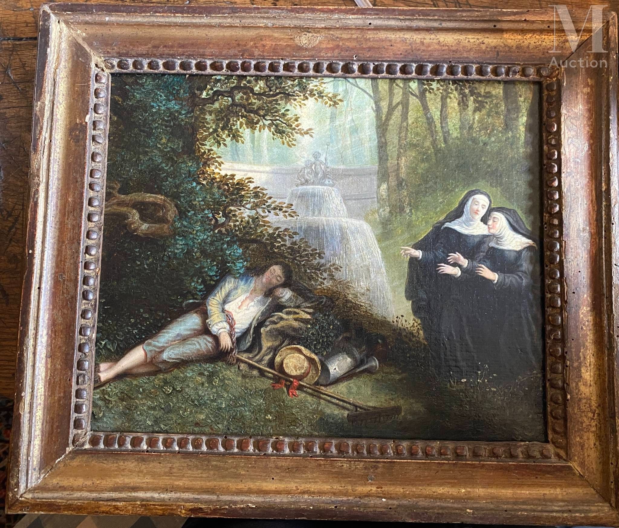 Ecole du XXème siècle Mazet de lamporecchio endormi (Contes de La Fontaine) Huile sur toile 22,5 x 28 cm