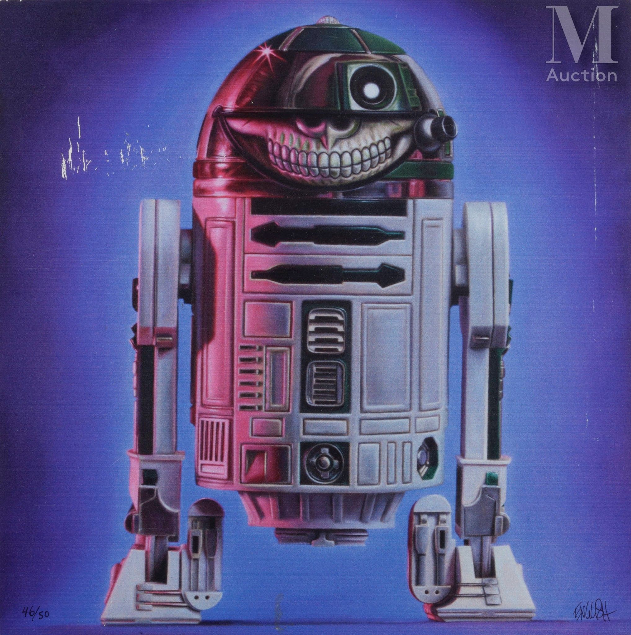Ron ENGLISH (né en 1959) R2D2, 2017 Impression numérique sur panneau de bois, épreuve signée et numérotée 46/50 25,5 x 25, 5 cm Edition Prints on Wood