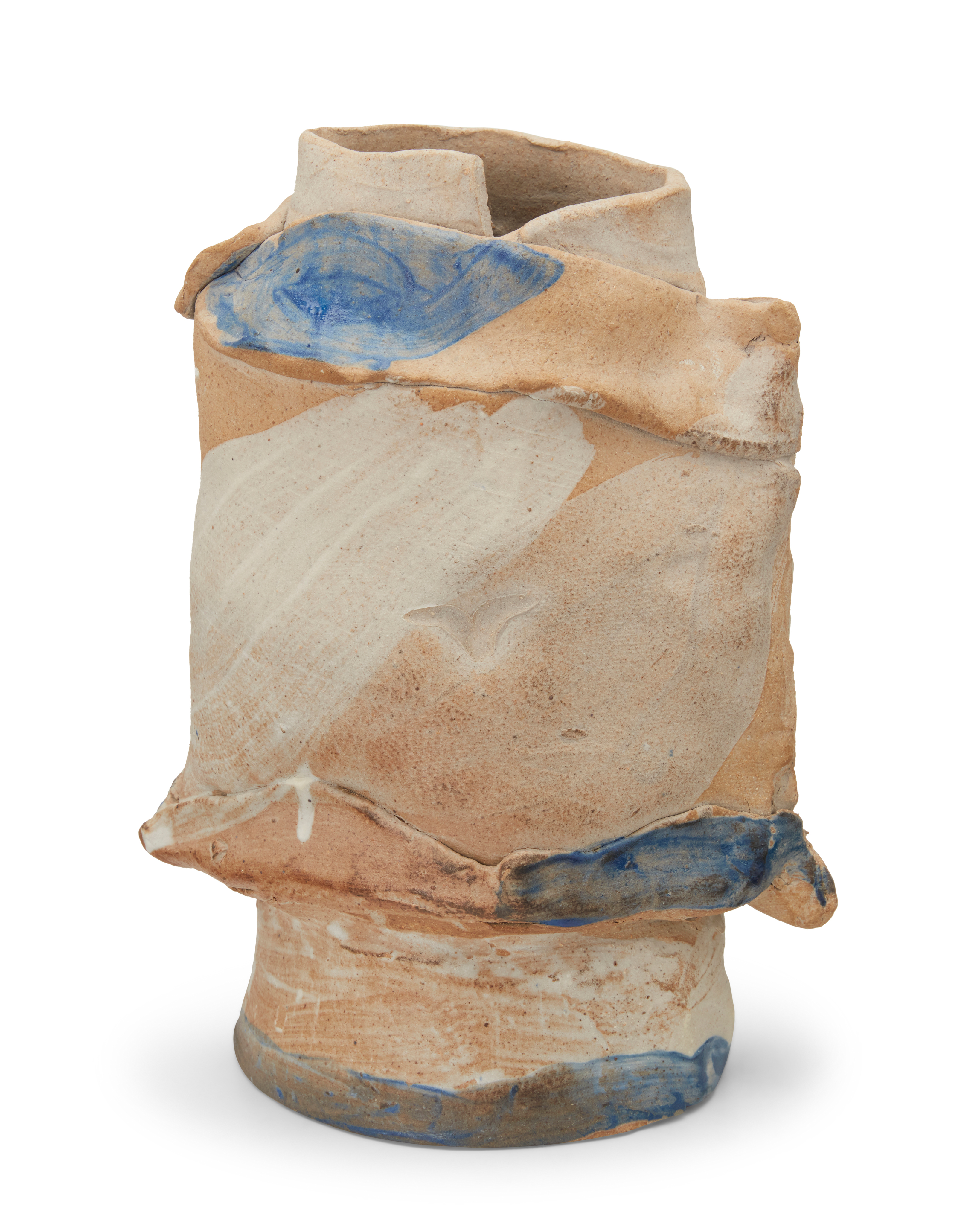 • Lot n° 142 Rudy Autio (1926-2007) A slab stoneware vessel, late 20th century Unsigned 12" H x 9" W x 7" D Provenance: Estate of Northwest potter Bill Sage, gifted from the artist Sale: MBA Seattle Auction, Seattle, WA, "Holiday Luxuries & Fine Arts from the Northwest," December 5, 2024, Lot 212 Private collection, Glendora, CA