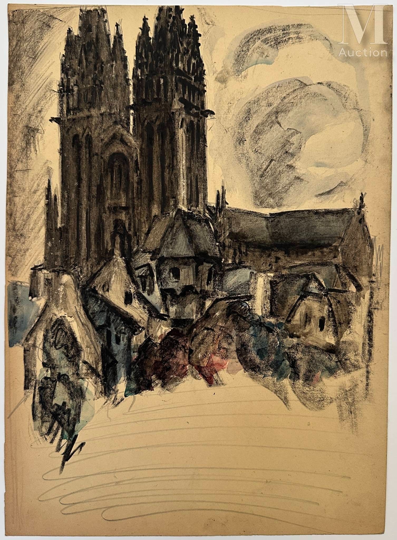 • Lot n° 120 Jean-Charles CONTEL (Glos 1895 - Paris 1928) Quimper, esquisses Lot de 5 œuvres comprenant 2 encres et lavis d'encre sur traits de crayon, 1 fusain, 1 fusain et aquarelle et 1 impression De 32 x 24,5 cm à 48 x 31,5 cm Un localisé à droite Quimper Un signé dans la planche Charles Contel