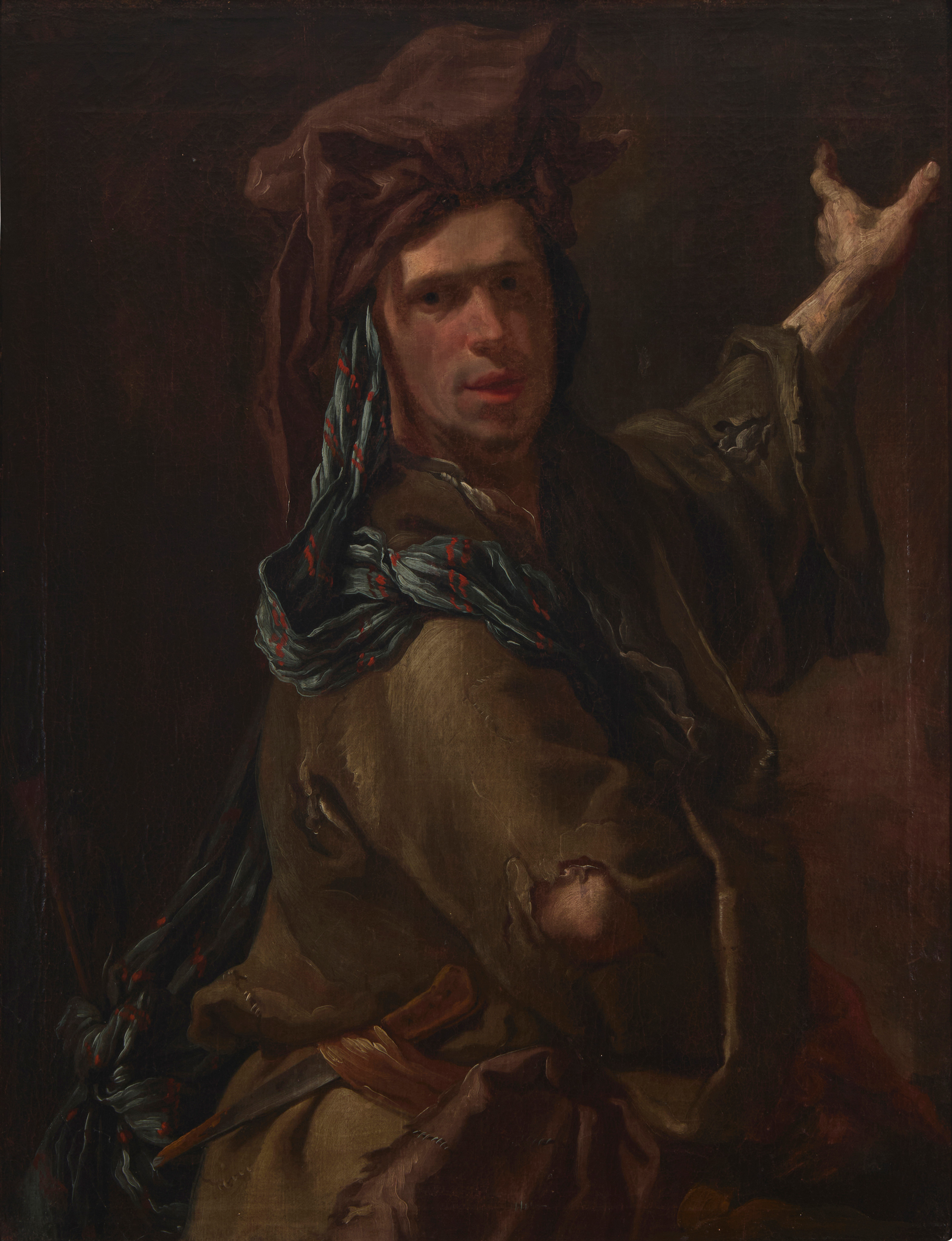 • Lot n° 112 Johann Georg Dathan (1701-1749) "Wild Huntsman, in ragged clothes" (likely a self-portrait of the artist) Oil on canvas Unsigned; titled on a label affixed to the frame's verso 34" H x 26.5" W Provenance: Siegfried Lämmle, art and antiques dealer, Brienner Straße, Munich, Germany and Los Angeles, CA Estate of Siegfried Lämmle, Los Angeles, CA, circa late 1950s Clifton Hart, San Francisco, CA, acquired from the estate through Walter Lämmle, son of the above, 1957 Private collection, San Marcos, CA Private collection, acquired from the above by descent Other notes: Johann Georg Dathan was a German-born painter of portraits and historical subjects. Dathan was active in Amsterdam between 1730 and 1736, and Mannheim, Germany between 1737 and 1740 and also spent time - and may have been born - in nearby Speyer, Germany. The art dealer Siegfried Lämmle was a noted dealer of sculptures and other decorative arts, and paintings and works on paper. Founded in 1894, his gallery was relocated to Almeida Palais at 51, Brienner Strasse in 1922. Lämmle was an honorary member of the "Münchner Altertumsverein" (Munich Antiquities Society) and was a member of "Vereinigung der Freunde der Staatlichen Graphischen Sammlung München e. V." (Friends of the Prints Collection). Beginning in 1928, his son Walter worked with him at the family gallery. As a Jewish dealer, Lämmle was targeted during the rise of Nazi power. In August 1935, he was barred from the "Reichskammer der bildenden Künste" (Reich Chamber of Fine Arts) and by the following year, despite their strong objections, the gallery inventory was subject to a forced liquidation sale. The family fled to Los Angeles in 1938 where they joined Lämmle's brother Carl, a successful film producer who had founded Universal Studios in 1912. The brothers, together with Walter, opened "Laemmle Gallery" in Los Angeles where they continued to deal in antiques and fine art for decades. The present work was in the personal inventory of Siegfried Lämmle in Los Angeles and was sold by Walter after his death as part of the settlement of his estate. In the mid-1970s, Clifton Hart, who had purchased the painting from the Lämmle estate in 1957, contacted scholars on the artist or the artistic period. In a letter dated February 22, 1975, Dr. Ernst Emmerling wrote that he considered the painting to be a self-portrait of the artist. Emmerling had written articles on the artist that were published in "Pfälzer Heimat," a scholarly quarterly journal founded in 1949. Christianne Weber, a scholar on Dathan, also considered the painting a self-portrait, according to now-lost correspondence. In around 1985, she published "Der Maler Johann Georg Dathan (1701-1749) Aus Speyer" possibly in the publication "Mitteilungen Des Historischen Vereins Der Pfalz" and may have also reproduced the painting there. In a letter dated September 6, 1977, Dr. Pierre Rosenberg, French art historian, professor and curator and current honorary president and director of the Musée du Louvre, noted that the painting was of "highest quality" when he viewed it in person during a visit to the home of Clifton Hart in 1970. Rosenberg when on to say that if Hart considered donating the painting to the Louvre, he would have it permanently on view in the Baroque gallery. Visual: Overall generally good appearance. Crazing throughout. Stretcher bar creases along each edge. Blacklight: Flecks of touch-up in the figures face, and surrounding areas. Bands of touch-up in the outer edges, primarily in the upper edge and the lower left corner, with four attendant patches verso. Frame: 40" H x 32.5" W x 3.5" D
