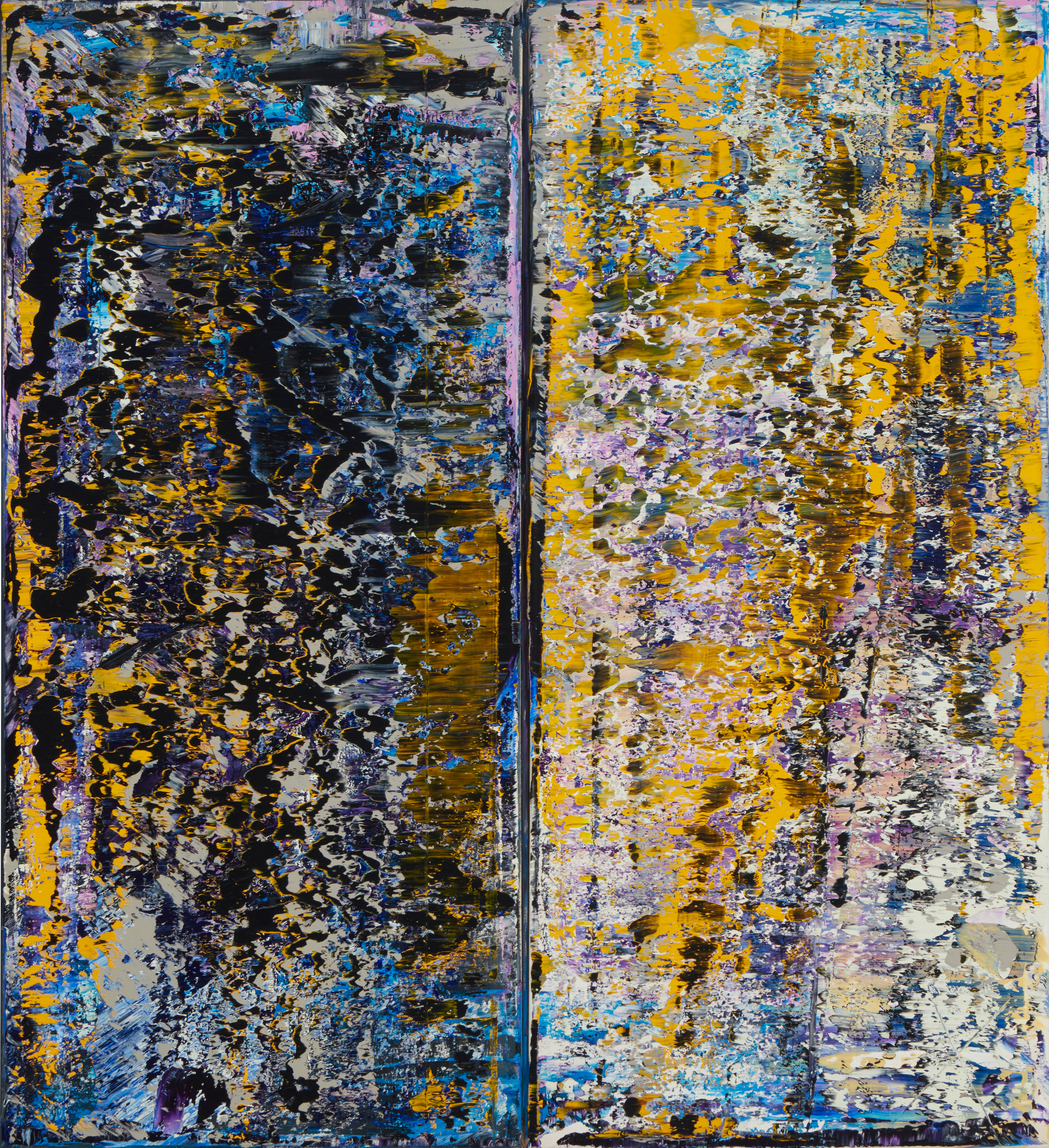 • Lot n° 145 Astor Milan Salcedo (b. 1969) "Two Sides of the Story - Part 6" (Diptych) Two oils on canvas (framed together) With the artist's incised "X" device in the lower right corner of the right canvas; titled by repute Each canvas: 43.25" H x 19.5" W; Overall: 43.25" H x 39.5" W