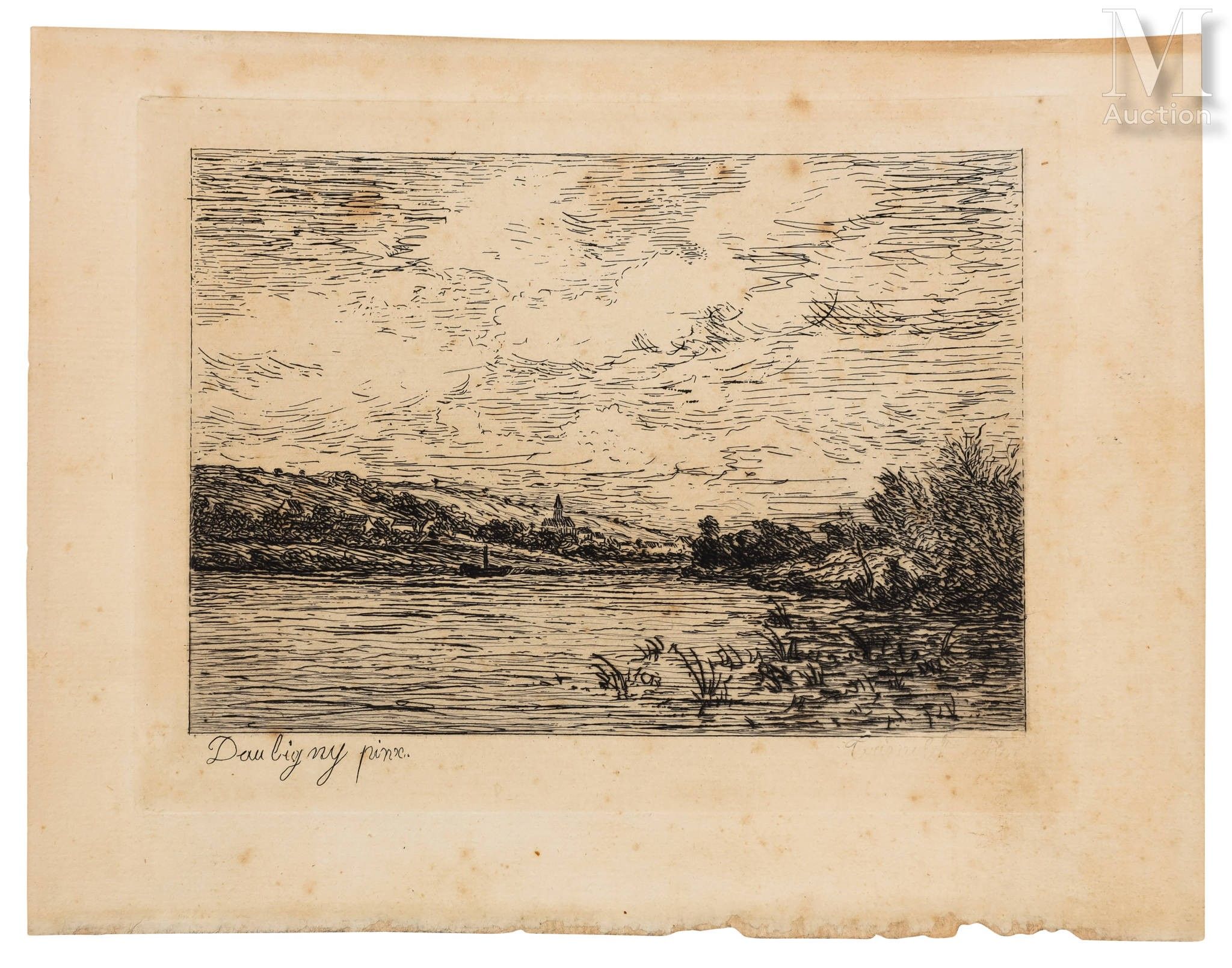 D'après Charles François DAUBIGNY (Paris 1817 - Auvers sur Oise 1878) Bord de lac Eau-forte sur papier Signée dans la planche en bas à gauche 12.5 x 16.5 cm à la cuvette Rousseurs, déchirures