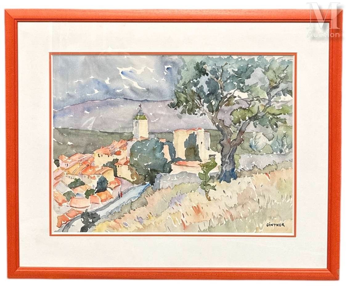 Paul GINTHER (Issoire 1906 - ) Paysage du sud de la France Aquarelle sur papier, signée en bas à droite 43 x 56,5 cm à vue