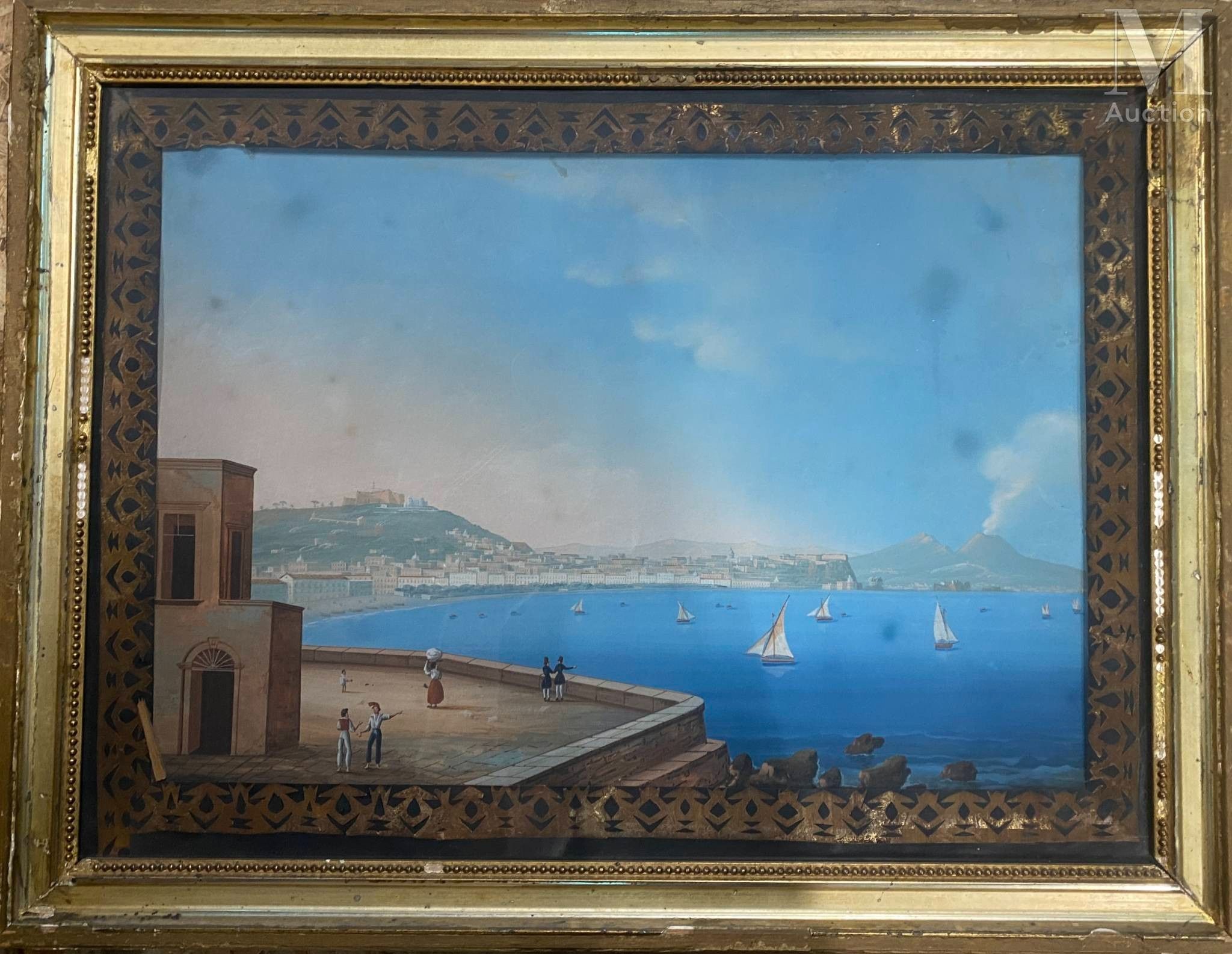 École de la fin du XVIIIème siècle Vue de Naples Gouache 38 x 52 cm, à vue. Restaurations, accidents, traces d'humidité